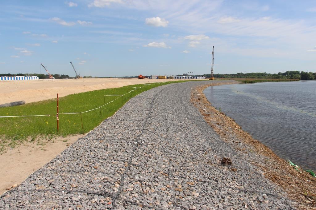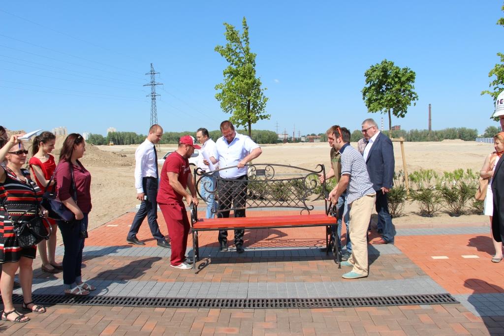 Участники совещания осмотрели небольшой фрагмент будущей Парадной набережной. К ЧМ-2018 эта благоустроенная и укрепленная набережная должна соединиться с променадом у Рыбной деревни. На совещании были представлены образцы покрытия пешеходной зоны и велосипедной дорожки, ограждений набережной, гранитные столбы-опоры для парапета, элементы озеленения.