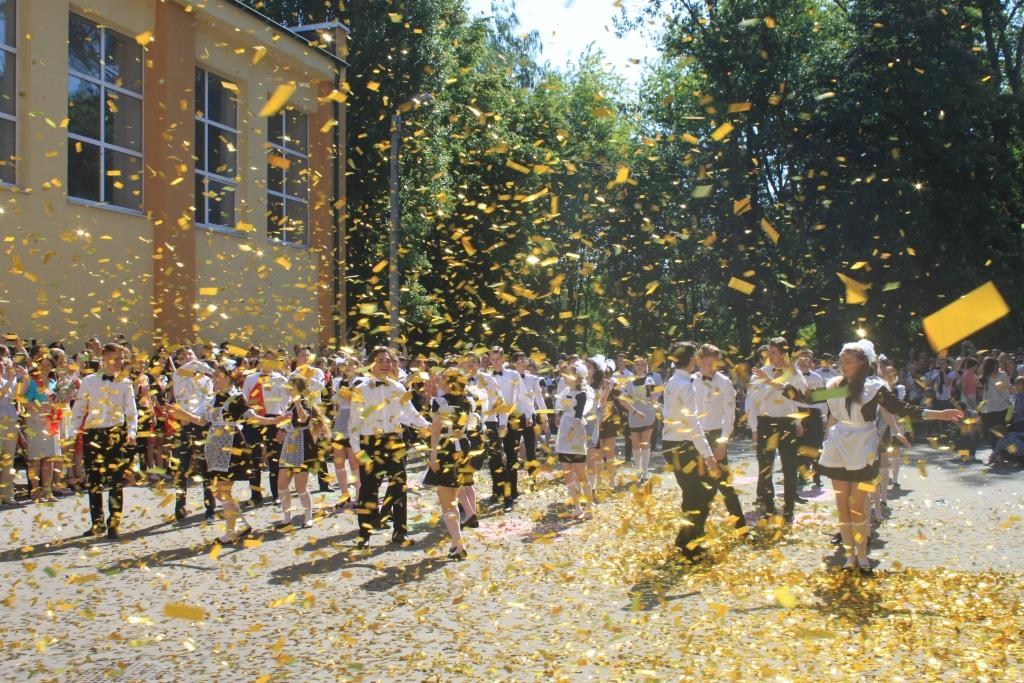 В честь праздника в небо были запущены разноцветные шары, а также салют из конфетти. Первоклассники и ребята постарше подарили выпускникам много творческих номеров и пожелали достойно сдать экзамены.