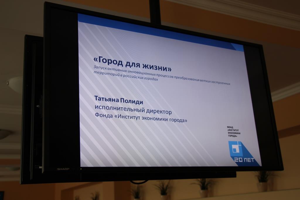 Докладчиками выступили руководители Фонда «Институт экономики города» (г. Москва): Татьяна Полиди - исполнительный директор фонда, директор направления «Рынок недвижимости» - и научный руководитель этого направления Эдуард Трутнев. Фонд имеет 20-летний опыт содействия социально-экономическому развитию городов. Новый проект фонда - проект «Город для жизни» реализуется в рамках сформированного фондом целевого капитала для запуска активных инновационных процессов преобразования ветхих застроенных территорий в российских городах.