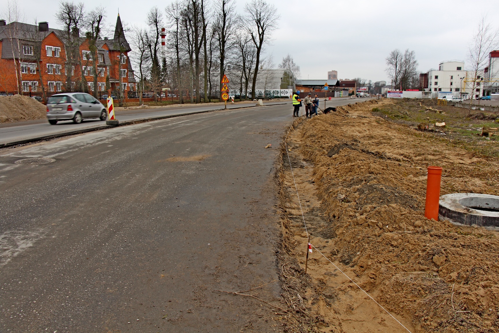 Работы начались по нечётной стороне от границы городской черты в сторону центра. На противоположном конце участка ещё продолжается прокладка и перенос коммуникаций, а также подготовка к поэтапному асфальтированию проезжей части.