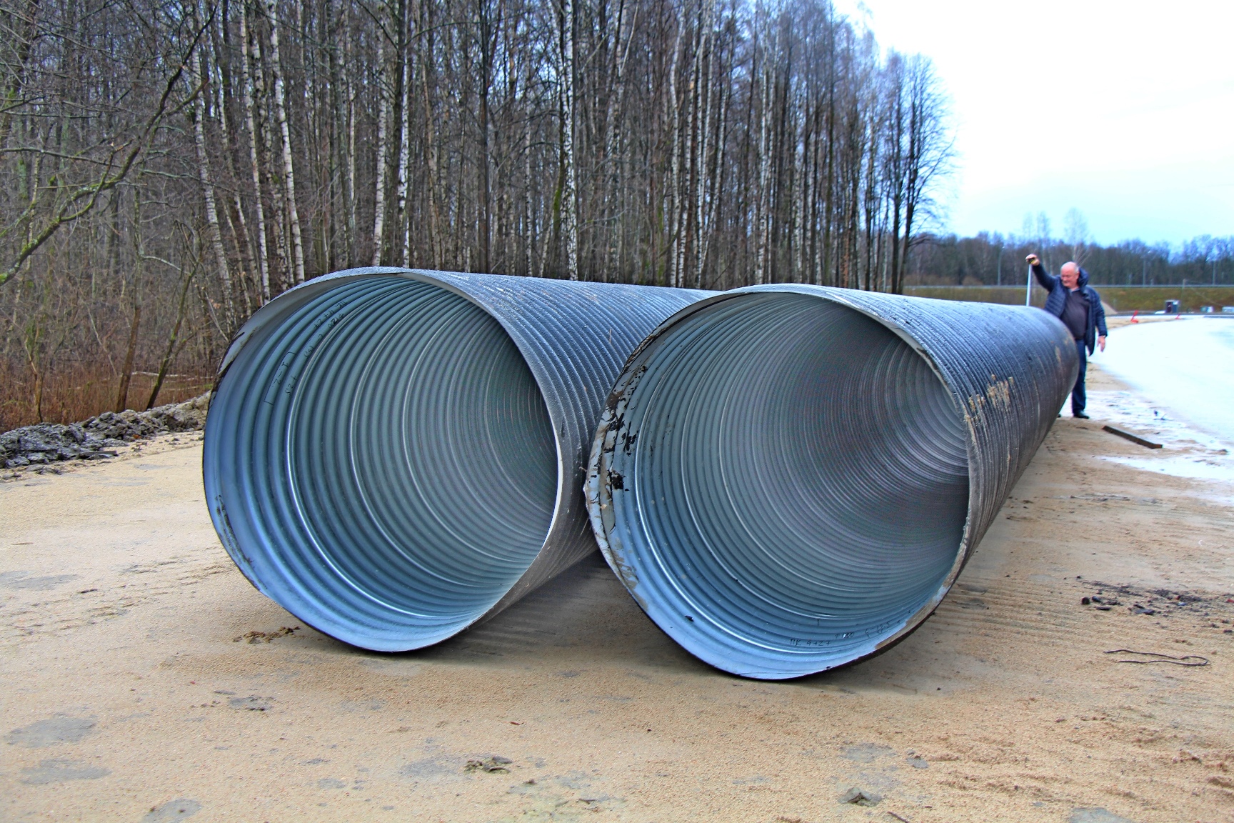 На объект завезли водопропускную гофрированную трубу диаметром 1,2 метра. Она заменит временную пластиковую трубу, по которой организовано водоотведение сейчас. Прокладку искусственного русла для лесного ручья под насыпью начнут на следующей неделе.