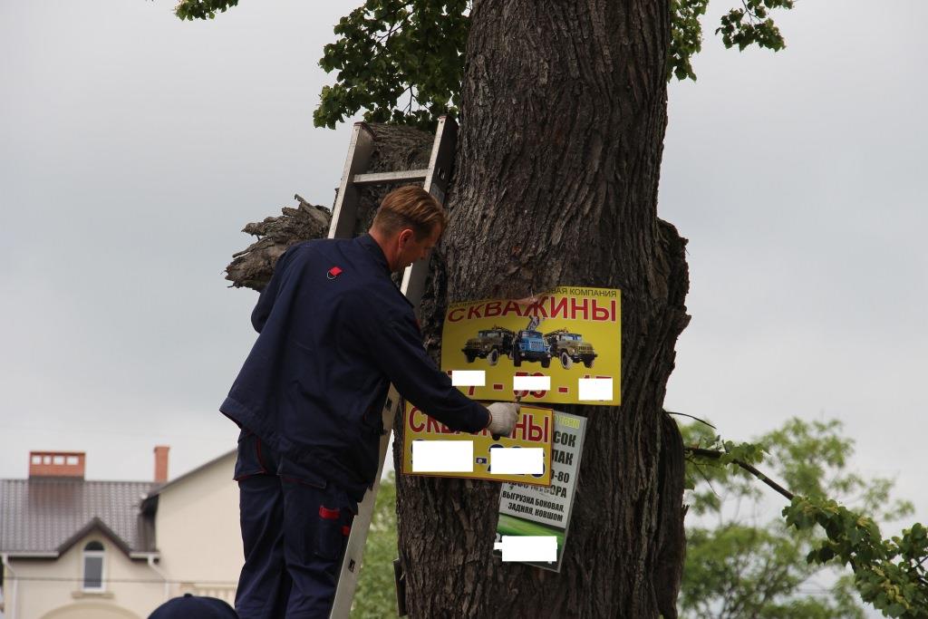 Как рассказал по завершении акции консультант отдела рекламы Александр Каушанский, всего сегодня удалось очистить от незаконной рекламы более 100 деревьев. Еще полсотни рекламных конструкций было снято с опор освещения.