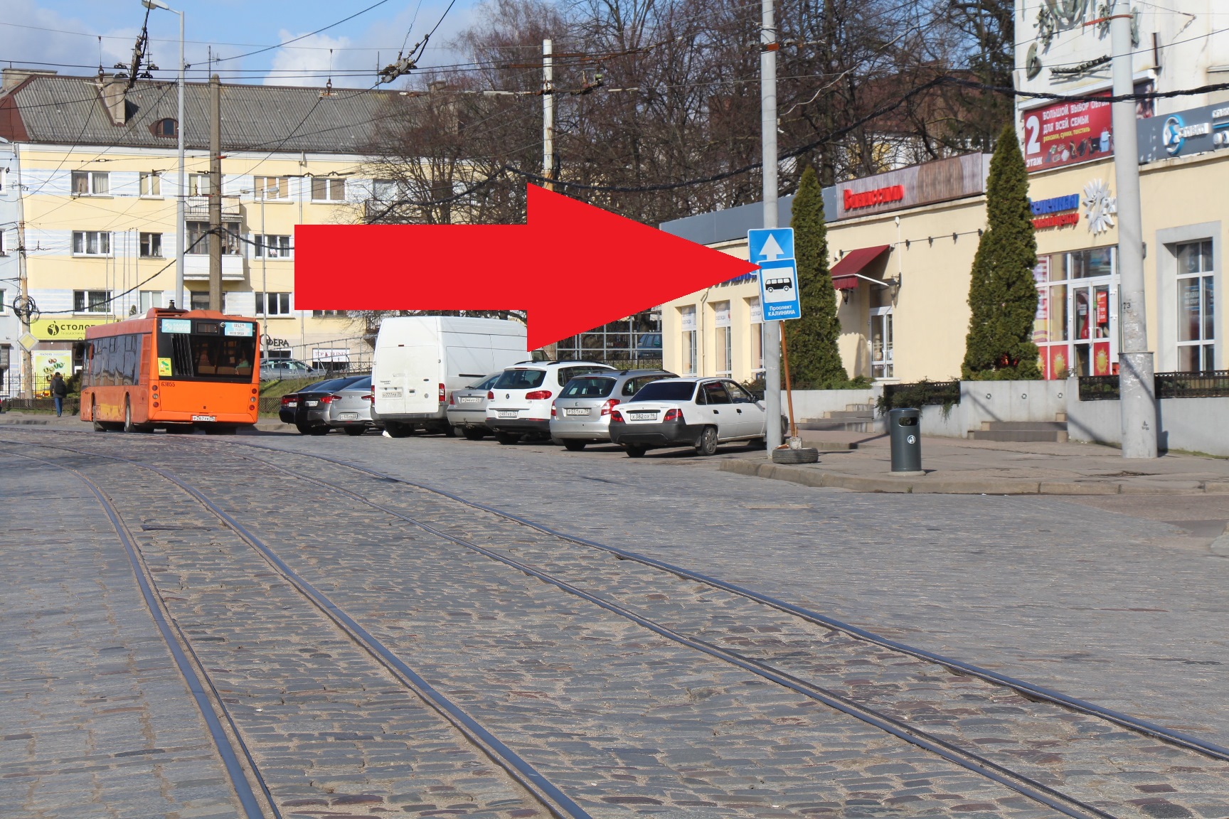 Для обеспечения безопасности и сокращения пробок на время выполнения очередного этапа работ на Ленинском проспекте остановка общественного транспорта «Проспект Калинина» временно сдвинута в сторону центра. Однако, несмотря на выставленный знак, владельцы продолжают оставлять автомобили в «кармане» у бывшего «Ольштына», не оставляя места для высадки пассажиров из автобусов и троллейбусов. Организаторы работ предупреждают, что для предотвращения аварийных ситуаций, припаркованные в районе перекрёстка с ул. Ольштынской машины будут эвакуироваться.