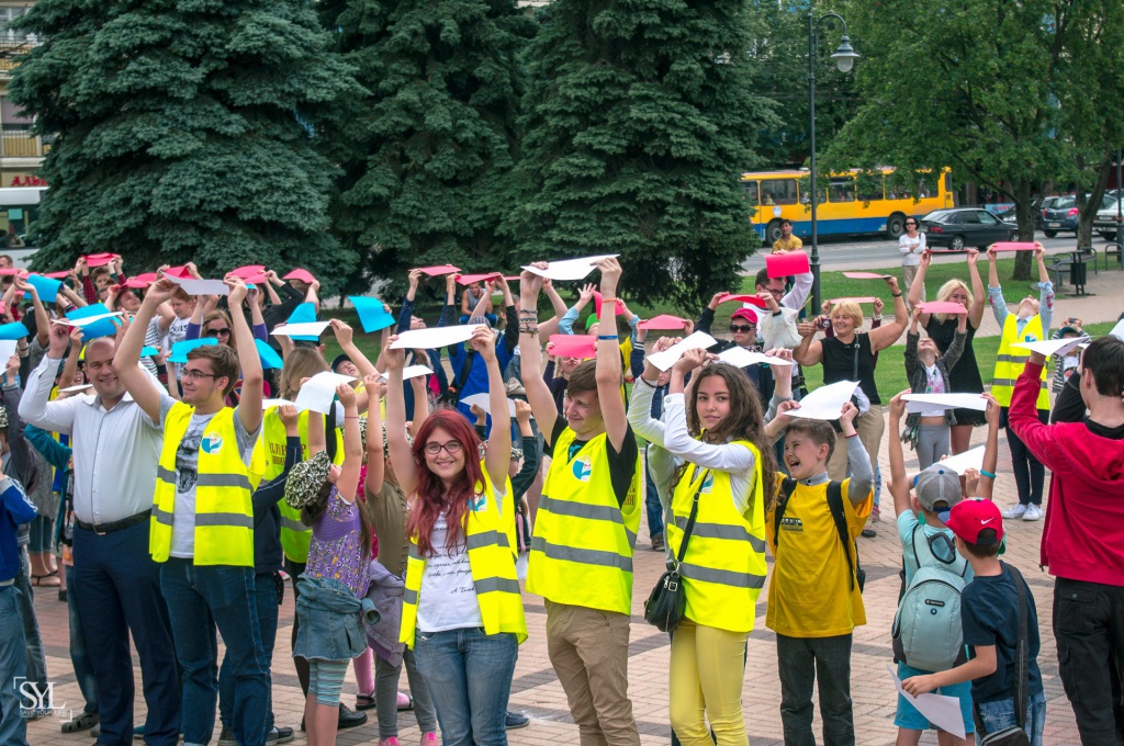 Несмотря на переменчивую калининградскую погоду, во флешмобе приняло участие более 200 человек. Молодежь выстроилась перед монументом «Мать-Россия» в «живой хештег» #К70, раскрасив его в цвета российского триколора. В акции приняли участие калининградцы, гости города, а также активисты молодежных центров Калининграда и Центра развития молодежного предпринимательства.