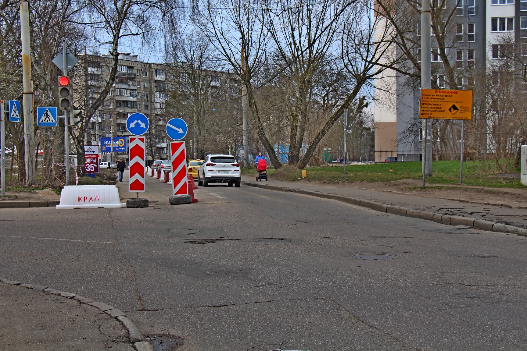 Для обеспечения безопасности при проведении капитального ремонта ул. Инженерной в начале недели выставлены временные ограждения, знаки, организовано одностороннее движение, перепрограммирован с учётом изменений светофор на пересечении Инженерной-Судостроительной-Батальной.