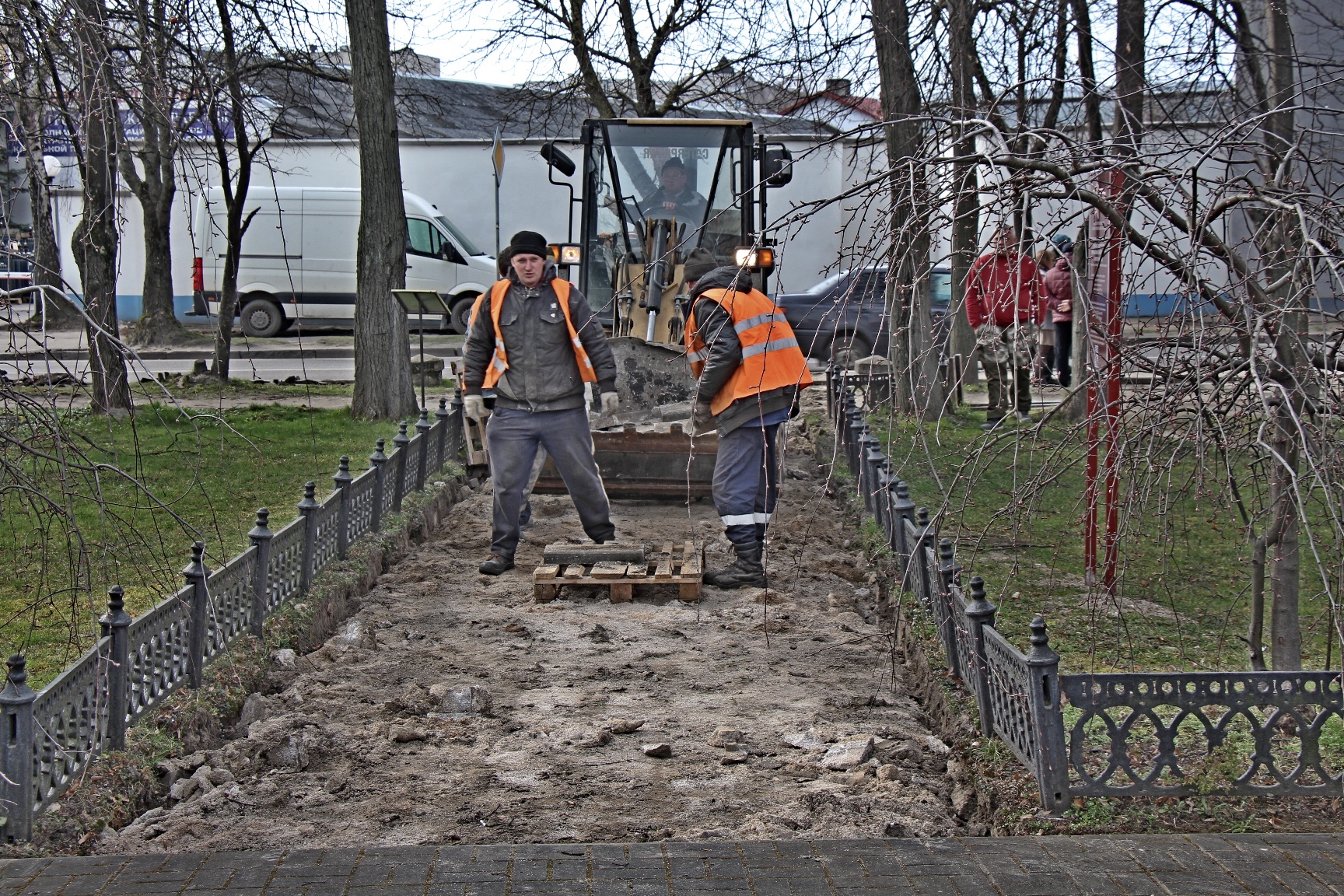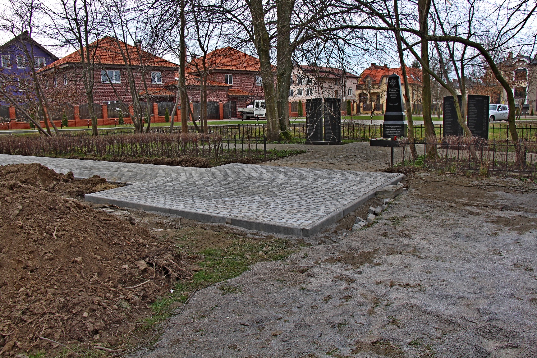 Отдельное направление работ юбилейного года – приведение в порядок подходов к мемориалам. Сейчас такие работы идут на дорожке к братской могиле на ул. Нарвской, только что завершено строительство тротуара к братской могиле на краю парка Макса Ашмана со стороны ул. Мих. Зощенко.