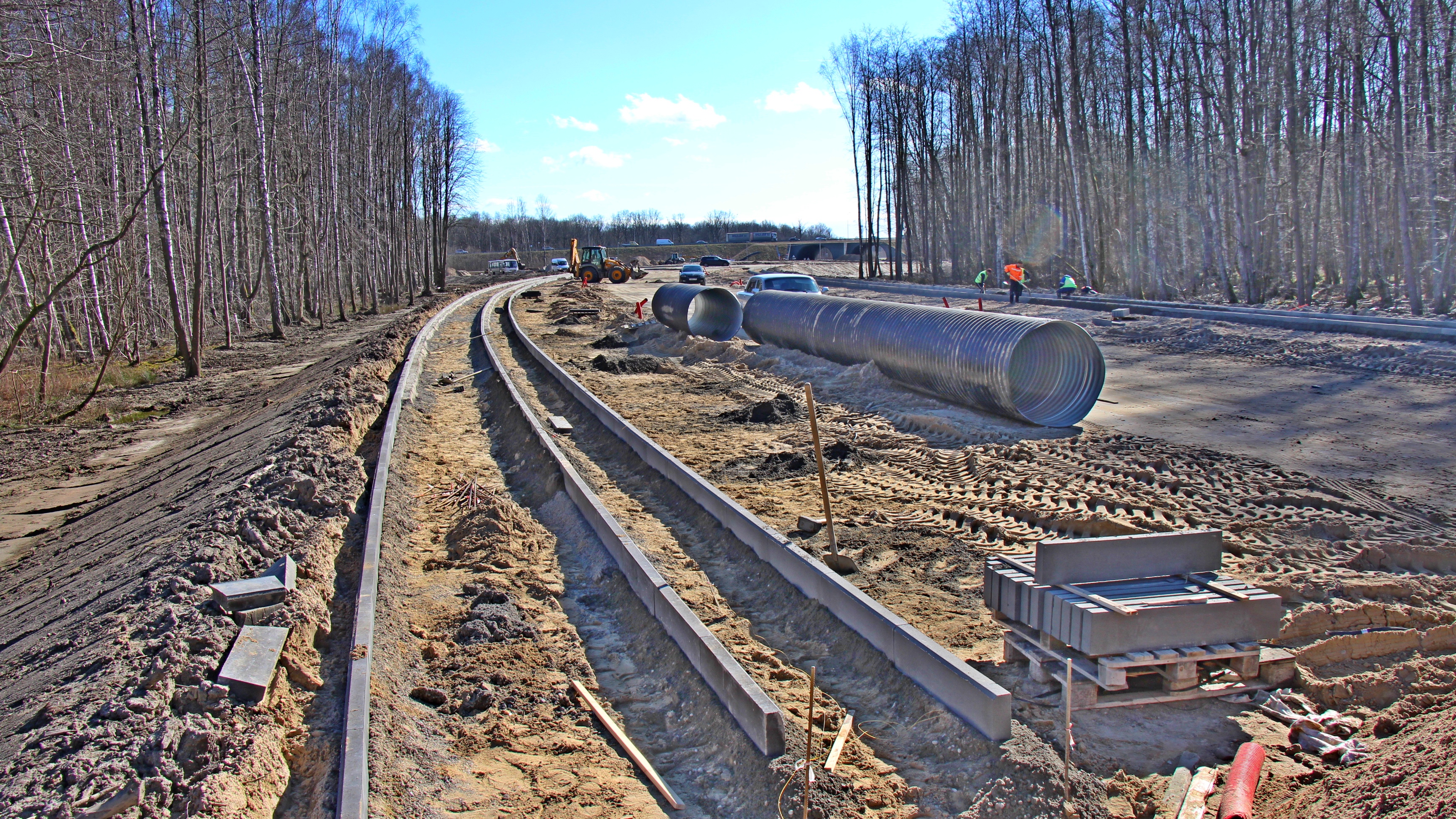 От кольцевой развязки в сторону Чкаловска устанавливают бортовой камень тротуаров и велосипедных дорожек, которые будут разделены между собой зелёными зонами, и так же, «зелёнками», отделены от проезжей части. Продолжаются работы на съездах с Окружной, идёт формирование и укрепление откосов.