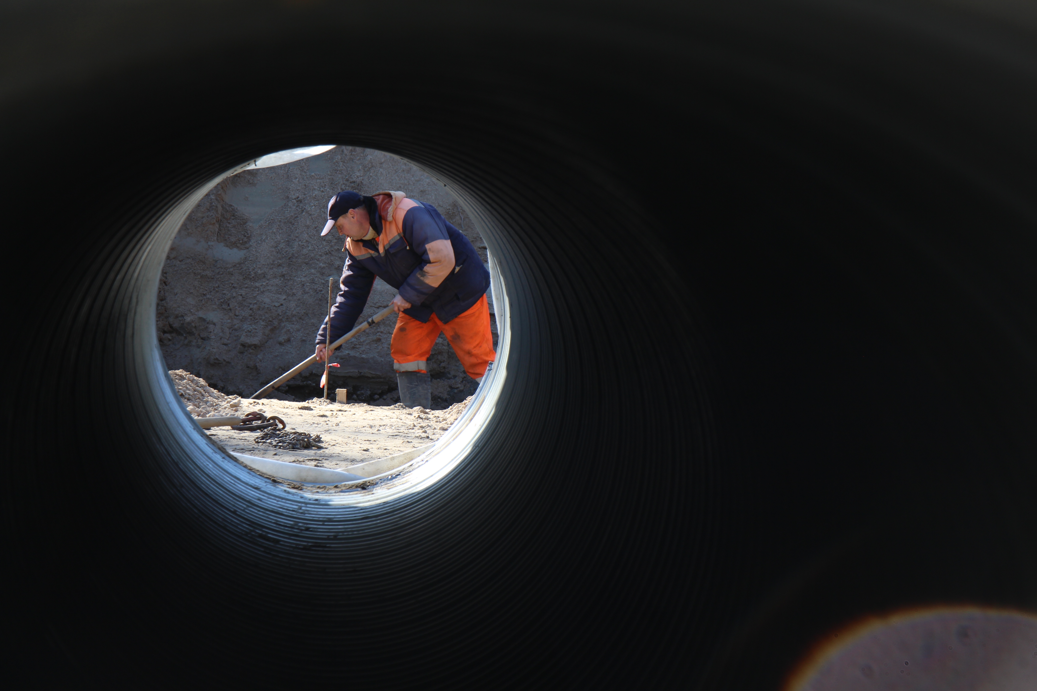 На ул. Планерной начали прокладку гофротрубы под будущей дорогой.