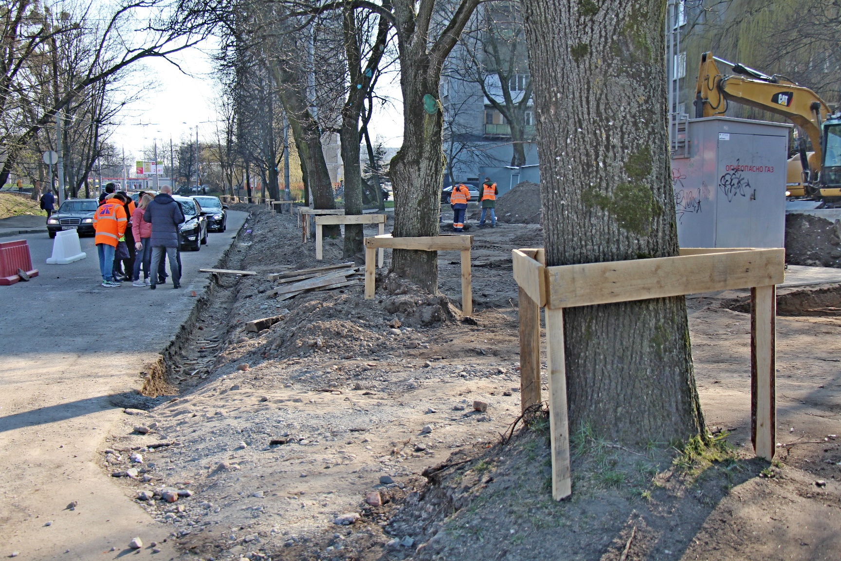 На ул. Инженерной в связи с капитальным ремонтом уже организовано одностороннее движение. Здесь также готовят «корыто» под тротуар, заботливо огородили деревья, продолжают снимать старое покрытие.