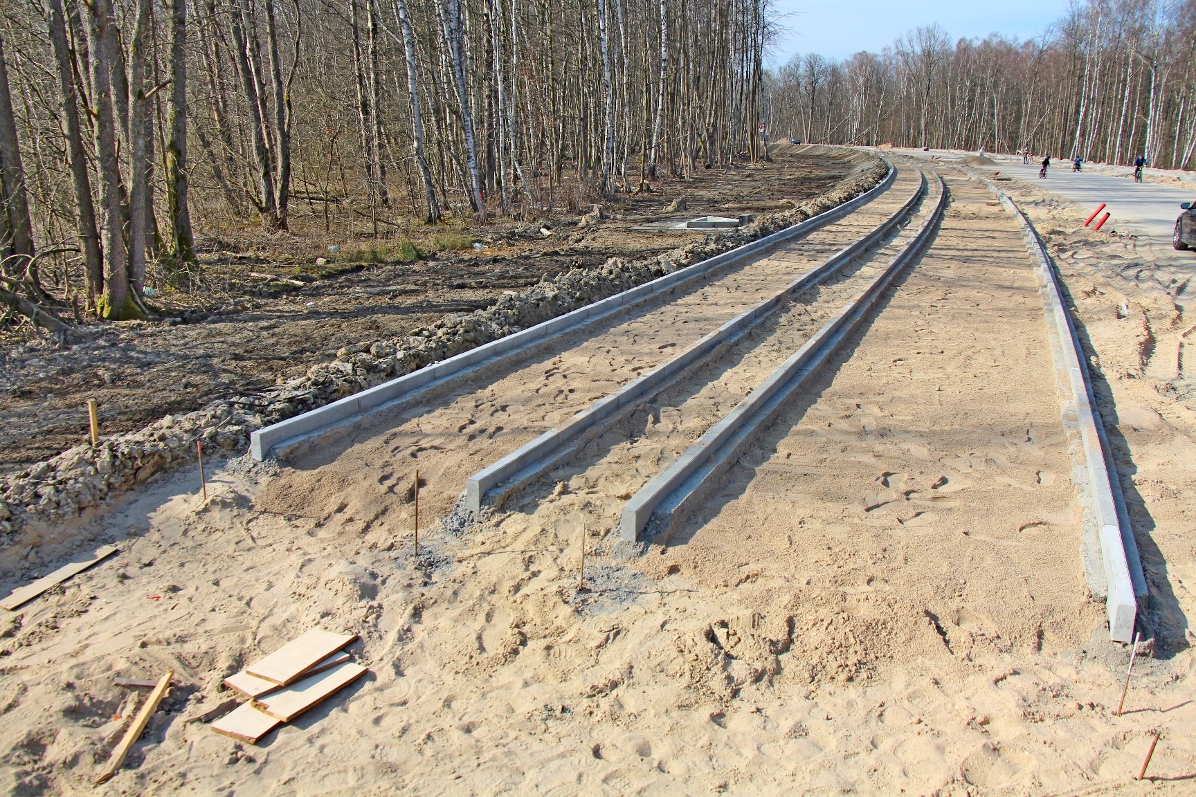 На разворотном кольце, которое будет сдано в мае, раньше основной трассы, также устанавливают бортовой камень, выполняют планировку территории между съездами с Окружной.