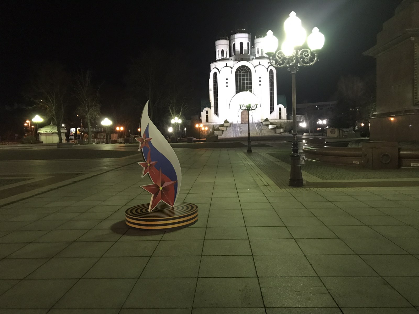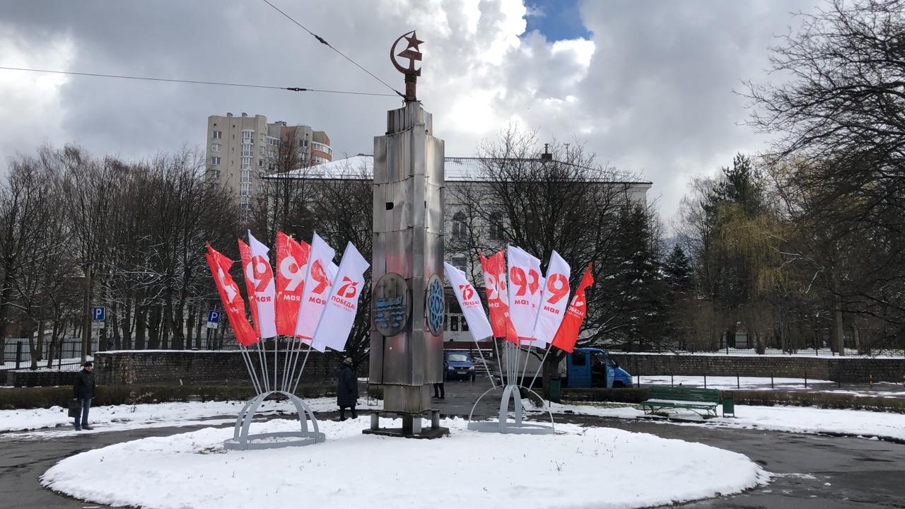 Праздничный облик уже приобретает самый центр города - площадь Победы. Там завершены работы по установке объемно-пространственной композиции «С Днем Победы!», двух конструкций «Вечный огонь», до 9 апреля будут установлены две флаговые композиции.