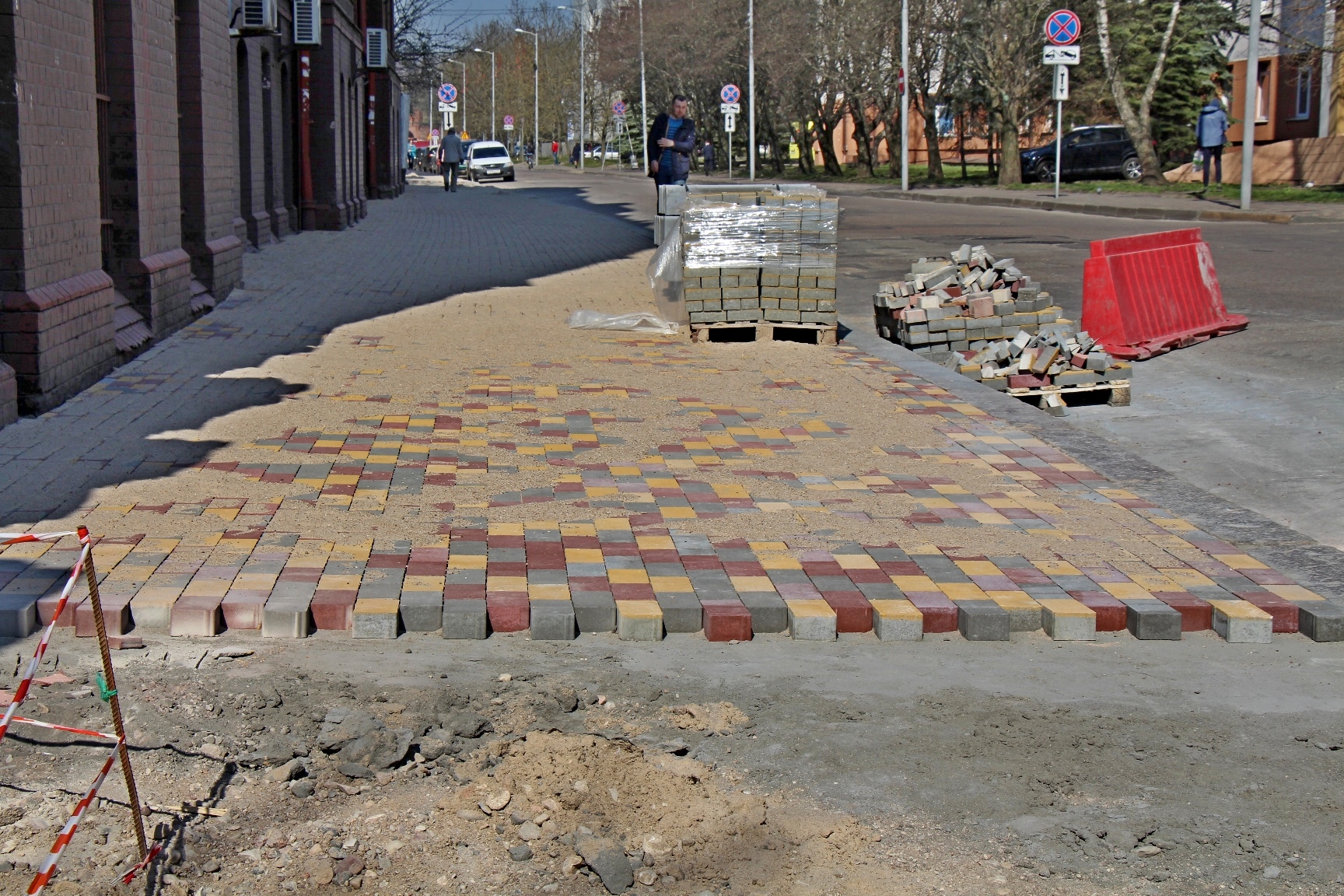 На тротуарах по ул. Нарвской от железнодорожного тротуара до ул. Зелёной также демонтируют старое покрытие, готовят щебёночное основание под асфальт. Подготовка щебёночного и песчаного основания продолжается и на тротуарах по уд. Г. Димитрова. На Ялтинской устанавливают бортовой камень, готовят основание для продолжения укладки двухцветной плитки на Гвардейском проспекте.