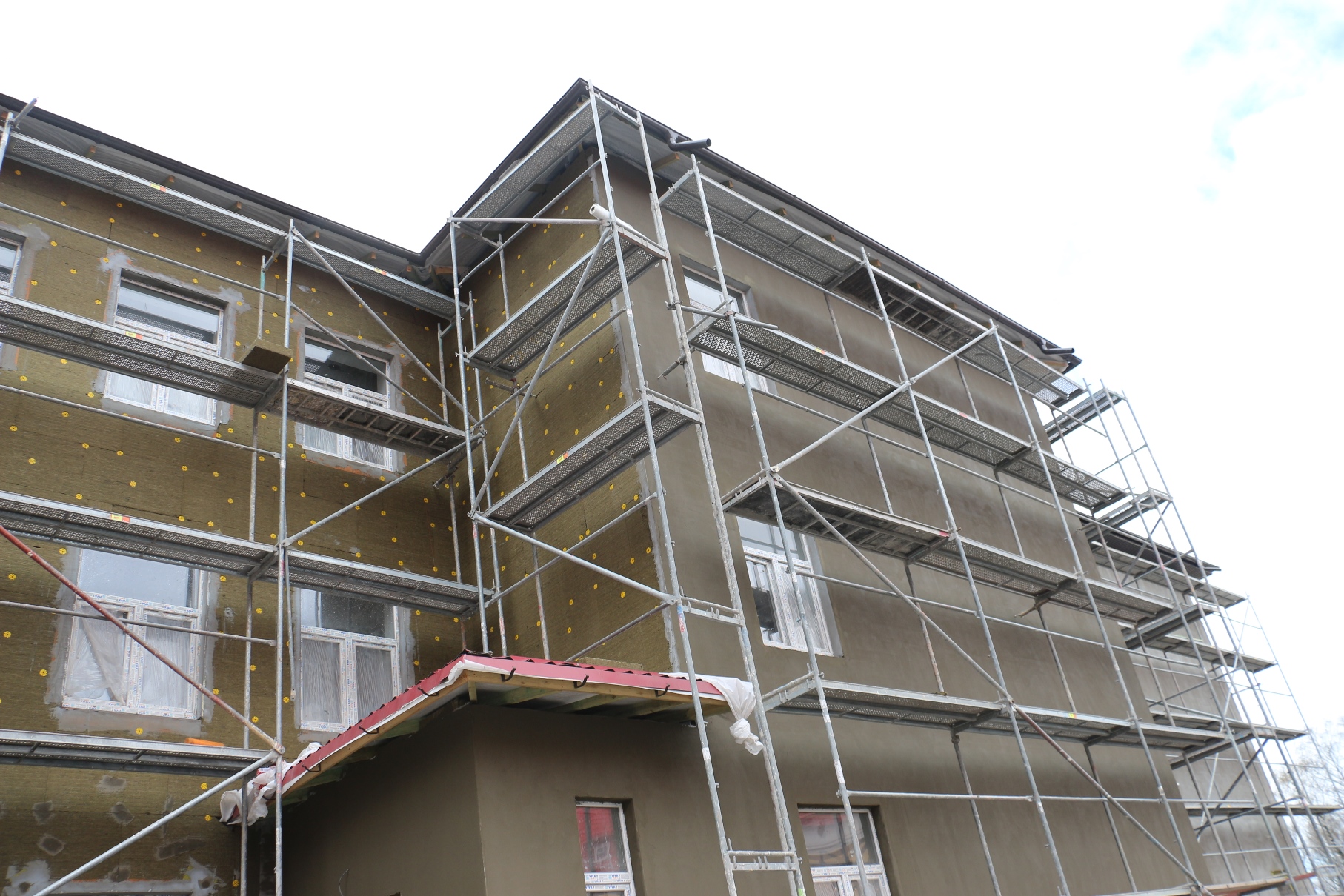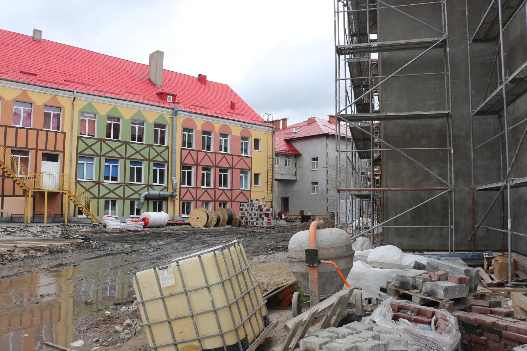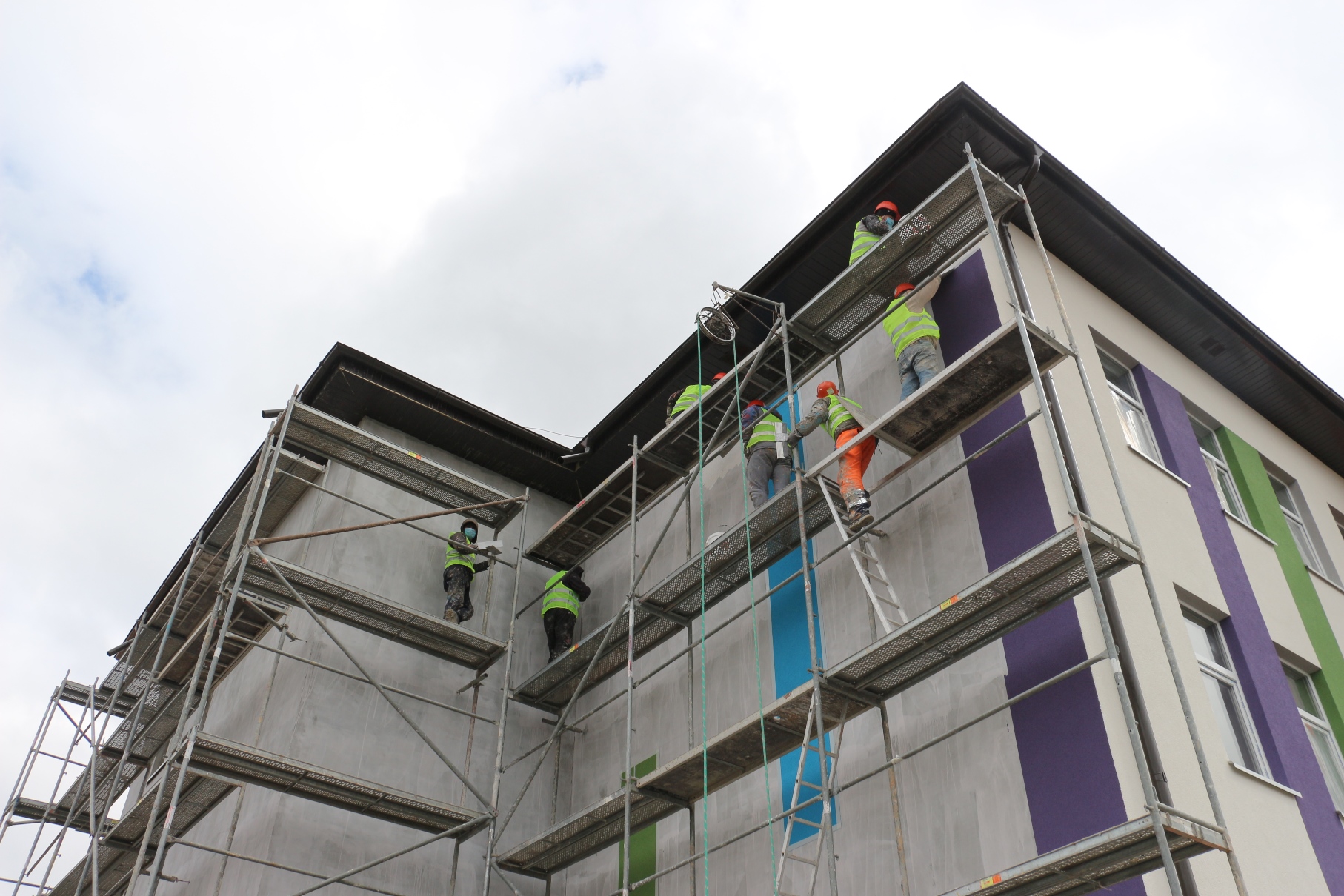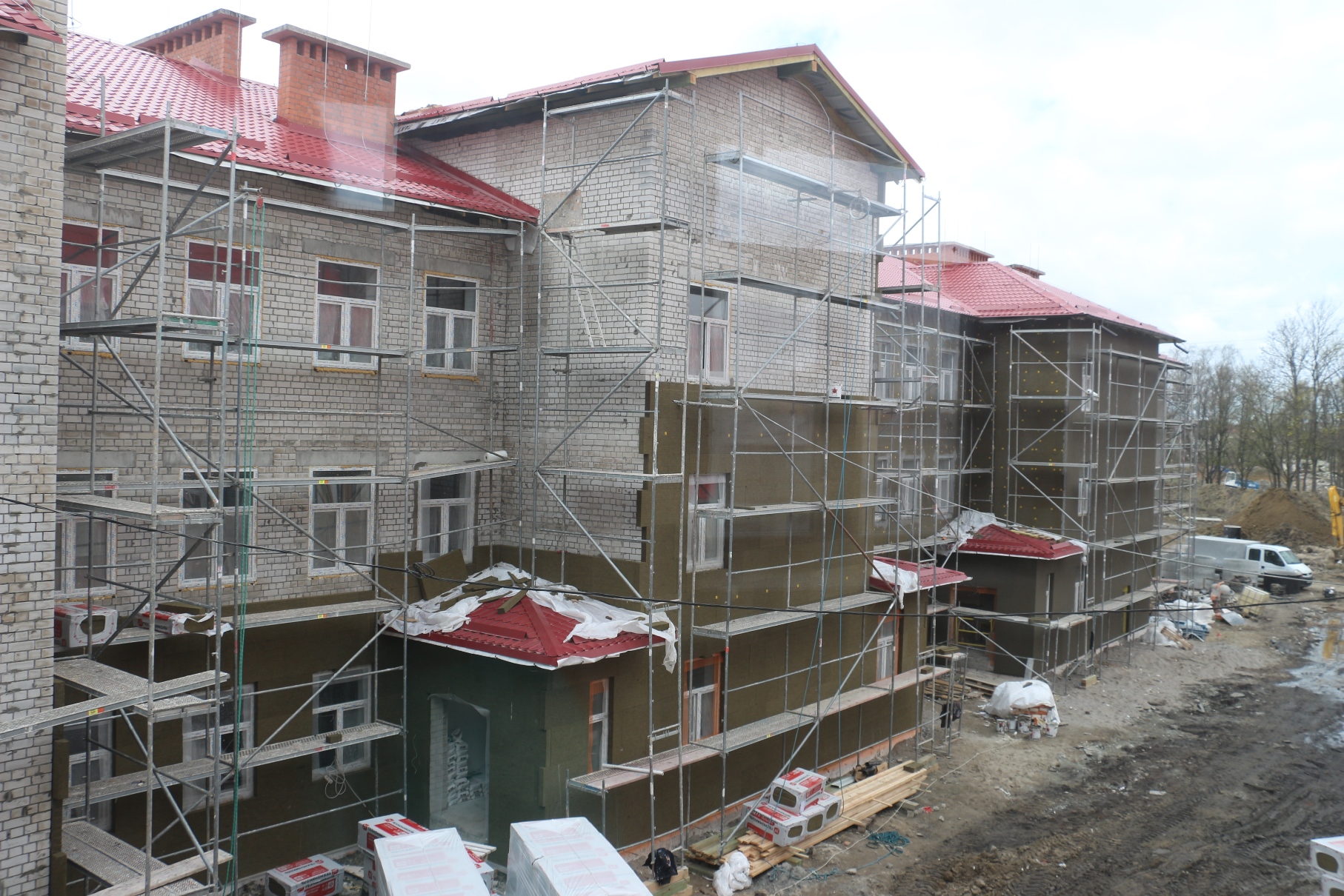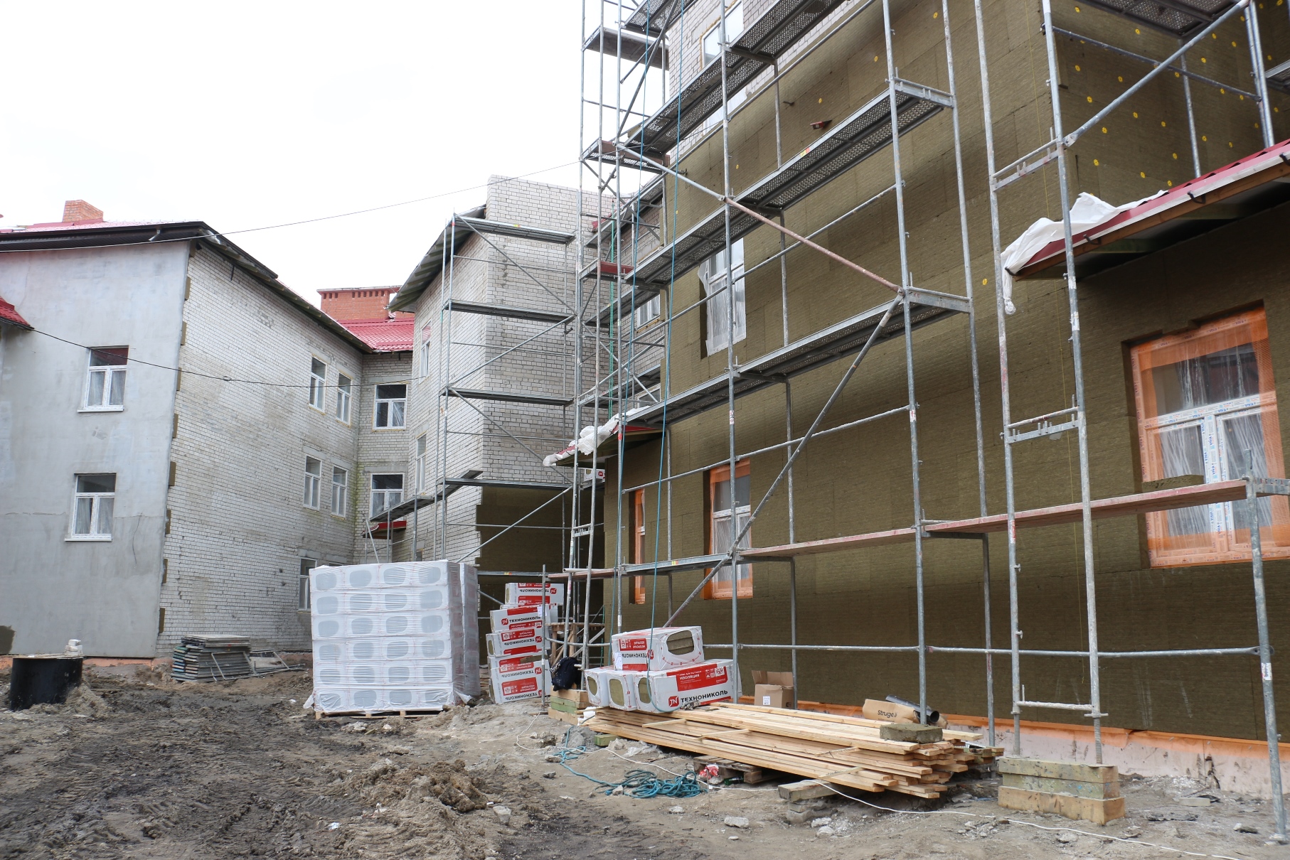 Сейчас строители ведут работы по утеплению, оштукатуриванию и окраске фасада здания, прокладке внутренних сетей электроснабжения, систем водоснабжения и канализации, системы отопления и газопровода. Также они приступили к устройству слаботочных систем, систем вентиляции, оштукатуриванию стен, шпаклевке помещений, кладке керамической плитки в помещениях санузлов, устройству бетонных полов. Прокладываются сети бытовой и дождевой канализации.