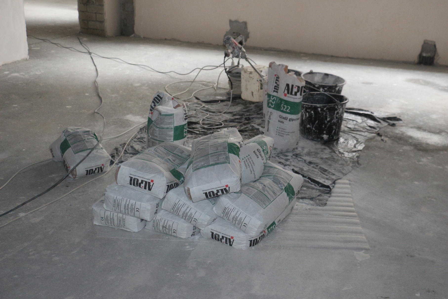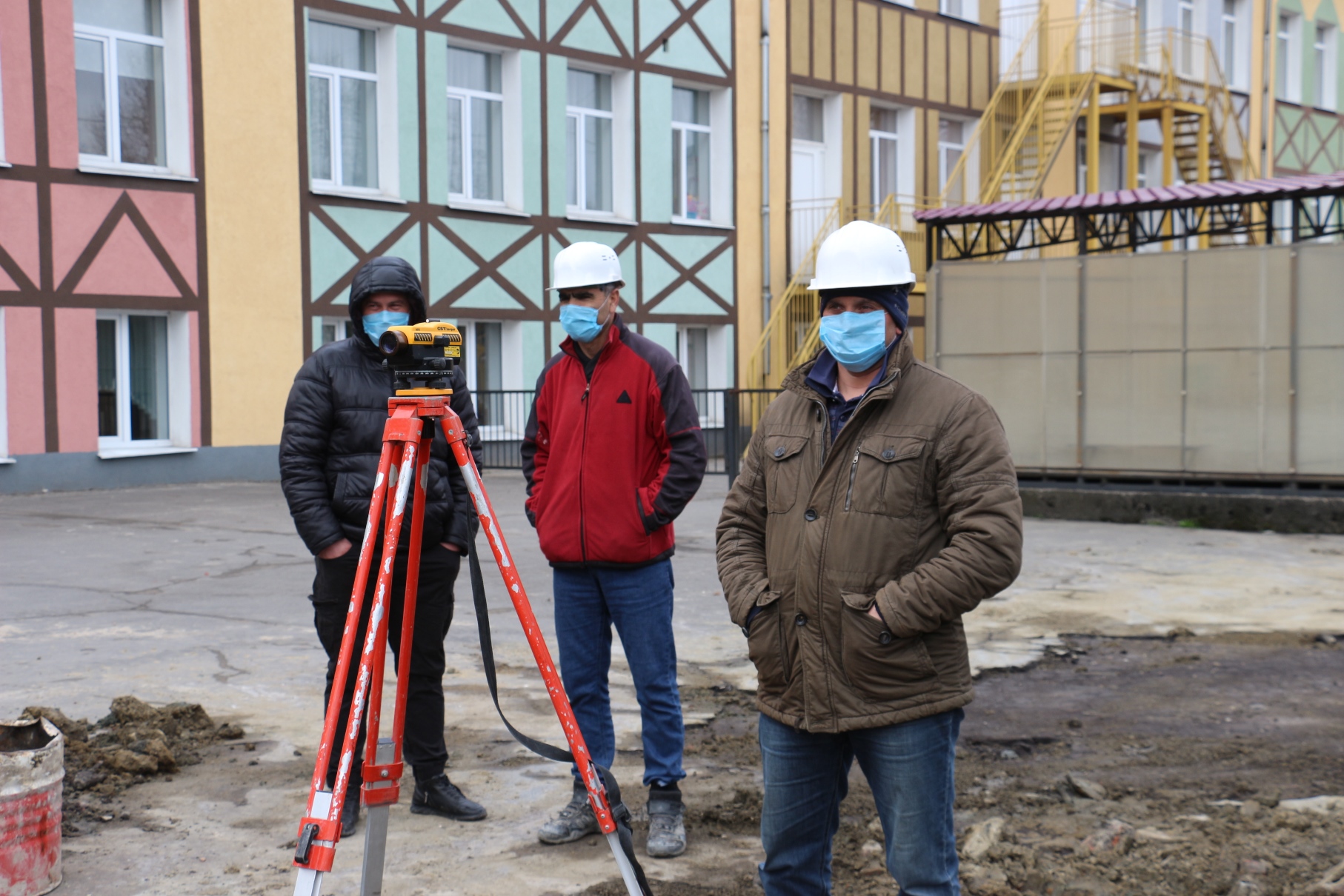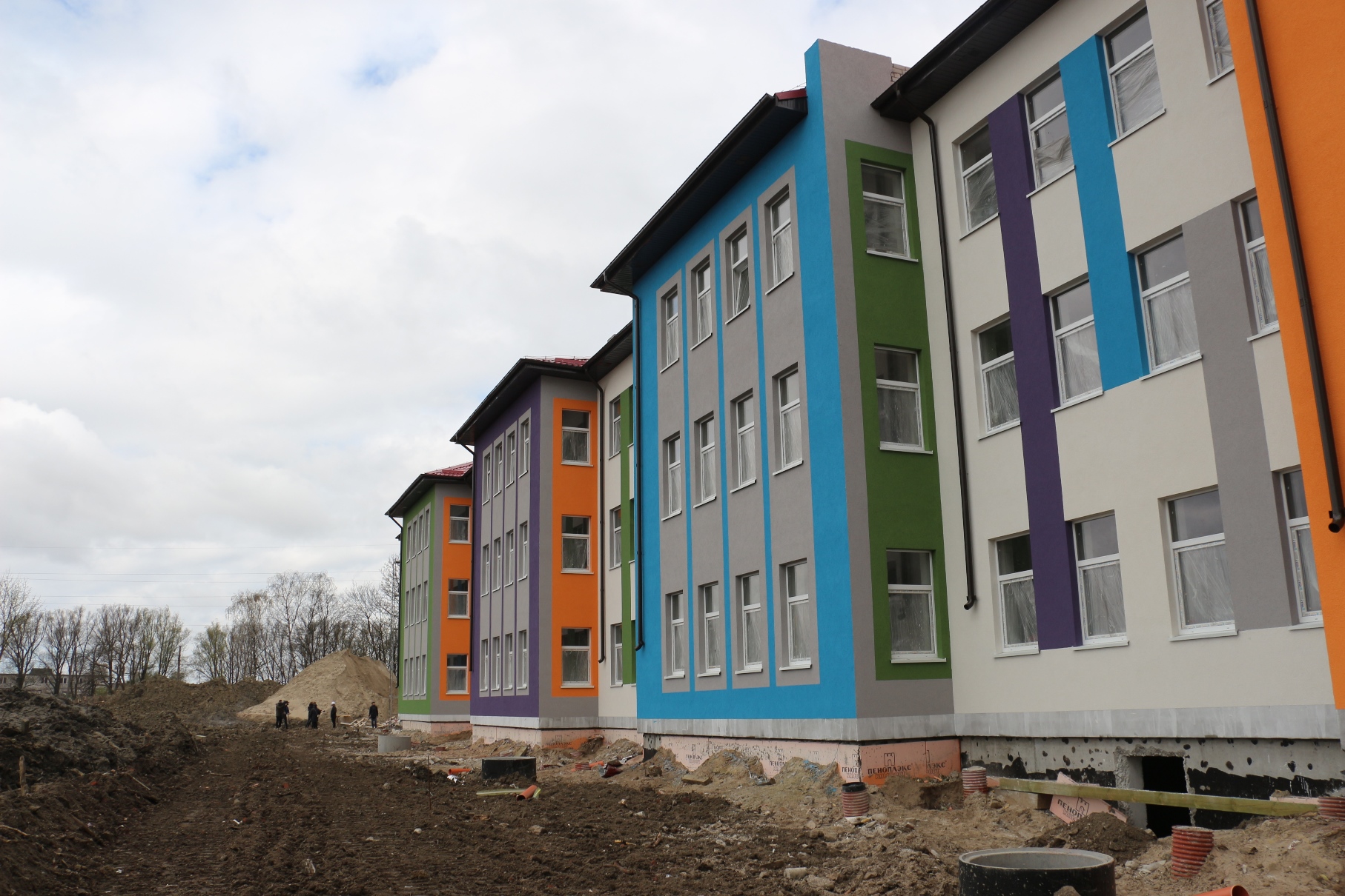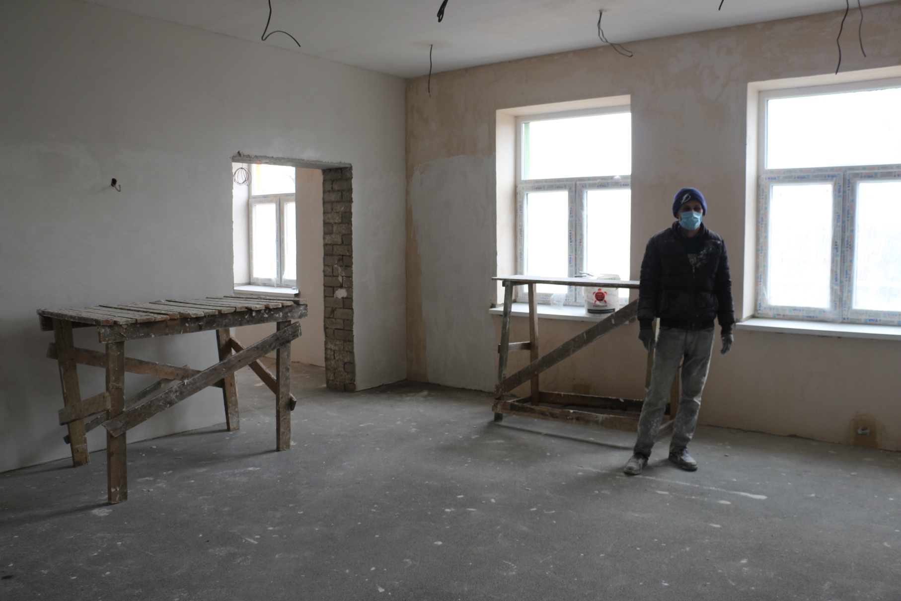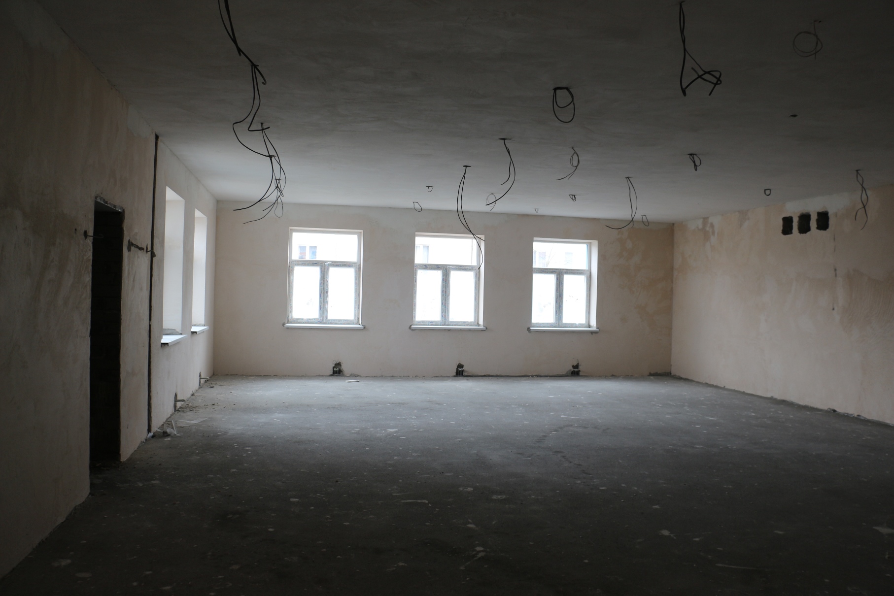 Сейчас строители ведут работы по утеплению, оштукатуриванию и окраске фасада здания, прокладке внутренних сетей электроснабжения, систем водоснабжения и канализации, системы отопления и газопровода. Также они приступили к устройству слаботочных систем, систем вентиляции, оштукатуриванию стен, шпаклевке помещений, кладке керамической плитки в помещениях санузлов, устройству бетонных полов. Прокладываются сети бытовой и дождевой канализации.