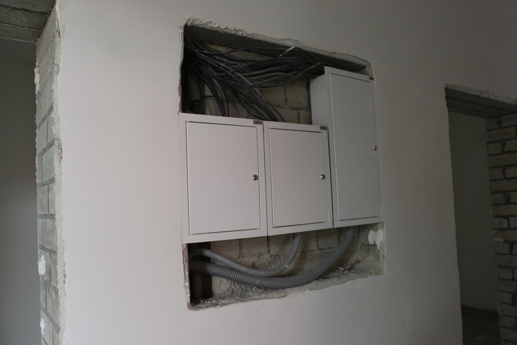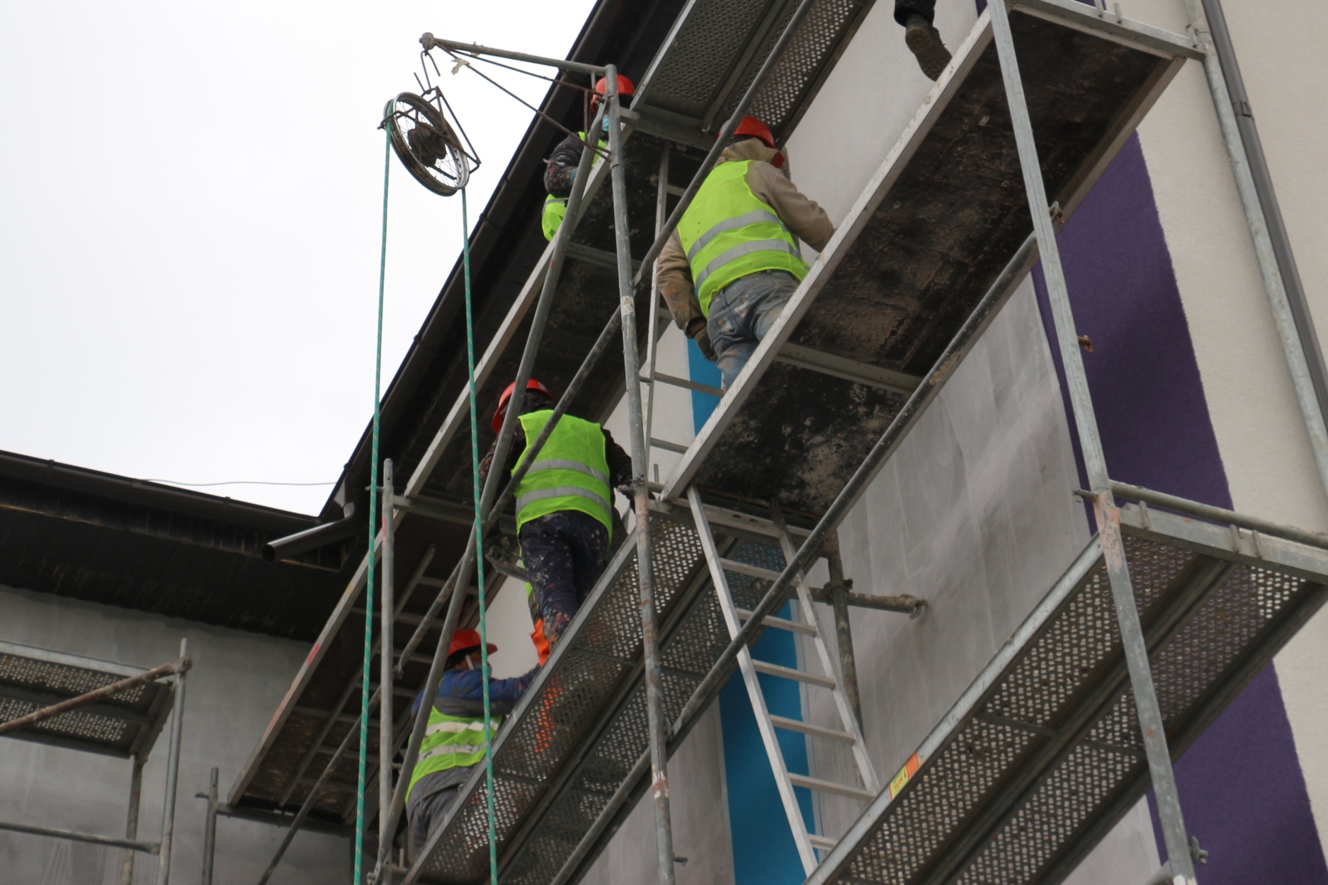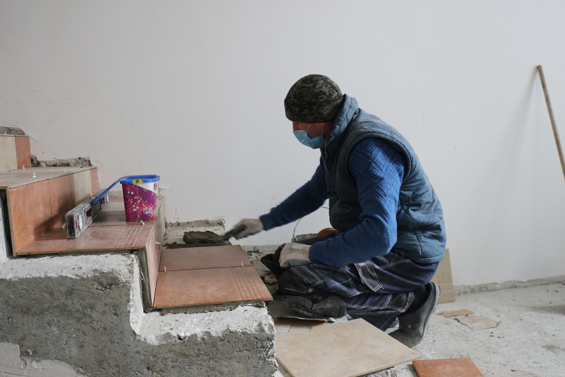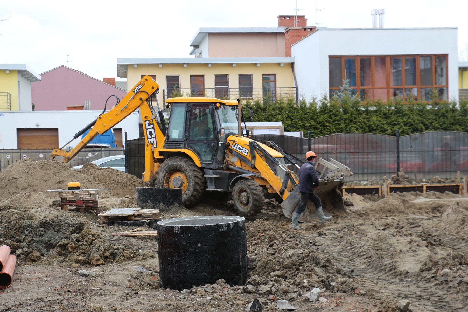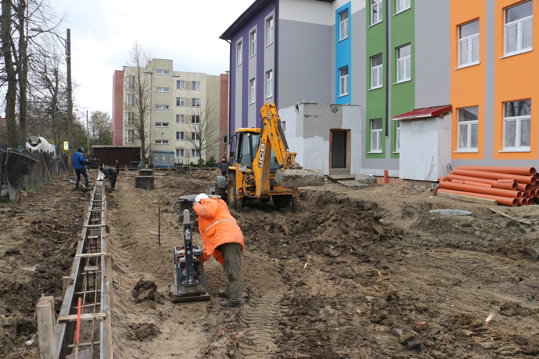 Сейчас строители ведут работы по утеплению, оштукатуриванию и окраске фасада здания, прокладке внутренних сетей электроснабжения, систем водоснабжения и канализации, системы отопления и газопровода. Также они приступили к устройству слаботочных систем, систем вентиляции, оштукатуриванию стен, шпаклевке помещений, кладке керамической плитки в помещениях санузлов, устройству бетонных полов. Прокладываются сети бытовой и дождевой канализации.