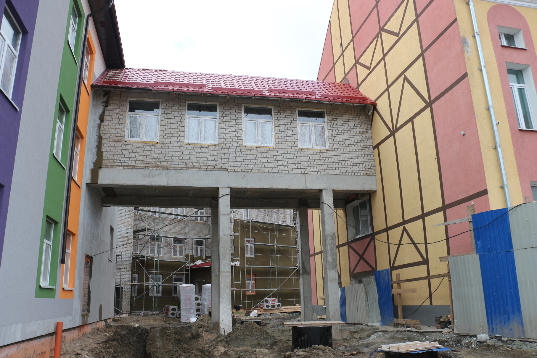 Новый корпус возводится во внутреннем дворе действующего образовательного учреждения № 72. Его начали строить в июле прошлого года, завершить объект по контракту следует до ноября 2020-го. Но подрядчик ООО «Запад-Строй» с самого начала стремился выполнить все работы и ввести корпус в эксплуатацию к 1 сентября.