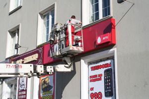 На площади Победы в центре Калининграда со здания делового центра демонтирована рекламная конструкция в форме касетона с названием «МТС», принадлежащая салону мобильной связи.