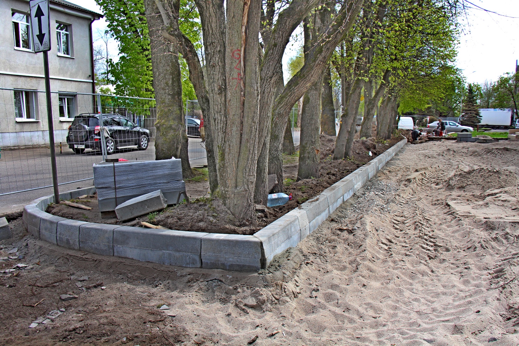 На ул. Летней также бордюрным камнем и поребриком уже обозначены границы будущего тротуара от школы к новостройкам. На Ялтинской улице капремонт тротуара продолжается ближе к Московскому проспекту, а на стороне, примыкающей к Восточной эстакаде, работы приостановлены – продолжается поиск вариантов технического совмещения будущего покрытия с растущими посреди пешеходной дорожки деревьями.