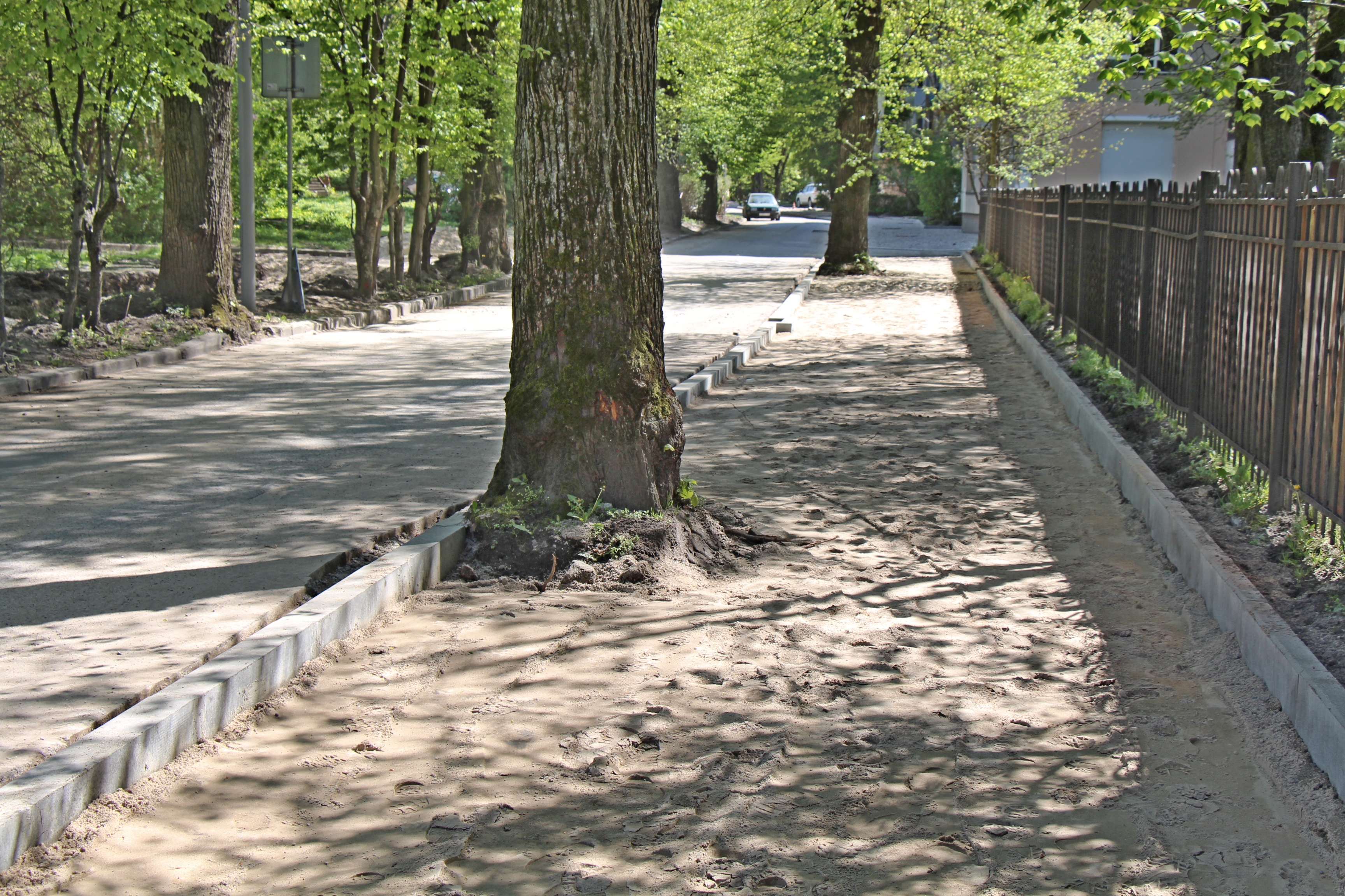 Дорожники закончили ремонт тротуара и благоустройство возле братского мемориала на ул. Нарвской и ведут капремонт на противоположной стороне улицы – от железнодорожного переезда до ул. Зелёной.