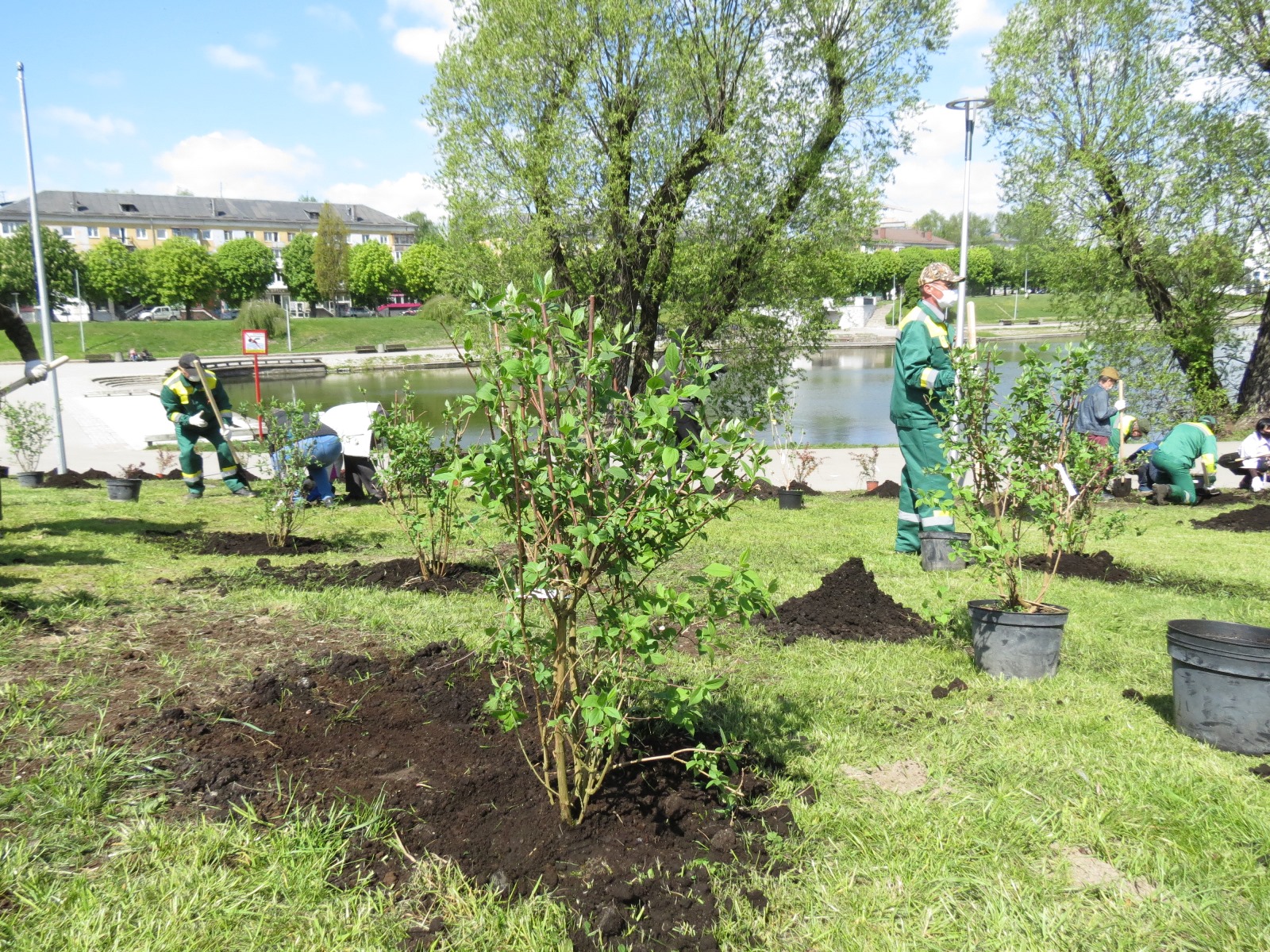 8 мая в Калининграде в микрорайоне Сельма и на набережной Нижнего пруда высадили деревья и кустарники.