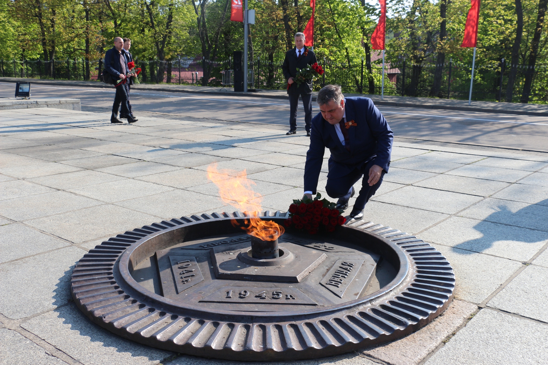 Возложил цветы к вечному огню у мемориала 1200 гвардейцам и к подножию памятника маршалу Василевскому и глава Калининграда Алексей Силанов.