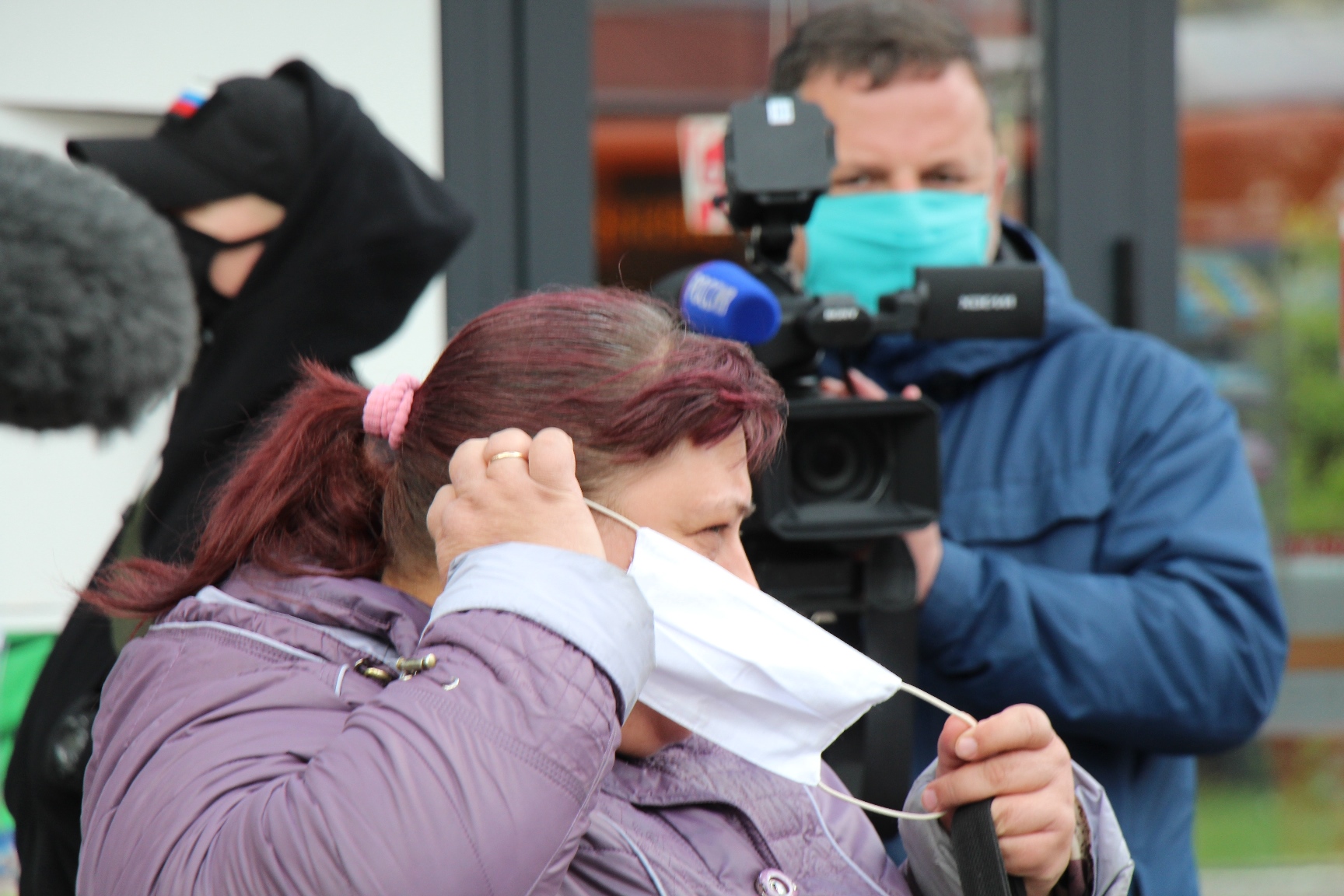Подъезжающие к остановкам водители автобусов малого класса, а также больших автобусов, где нет изоляции кабины, также были в масках.