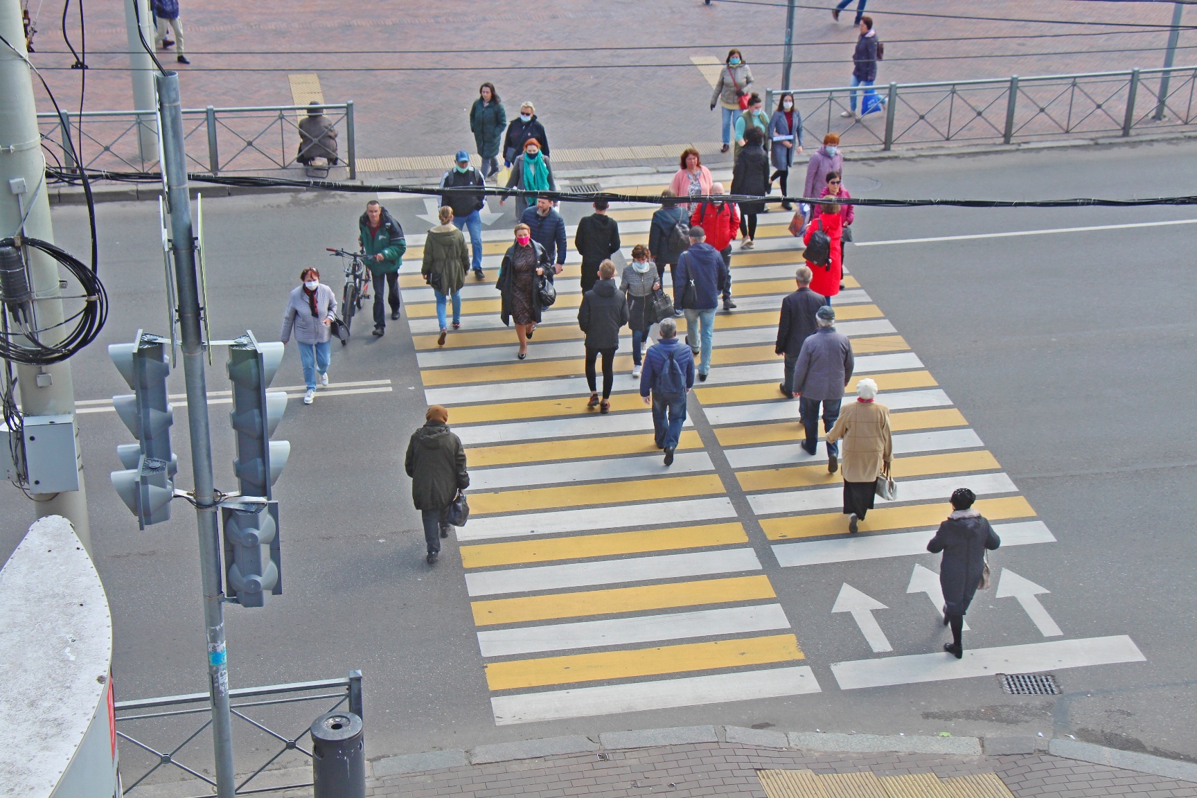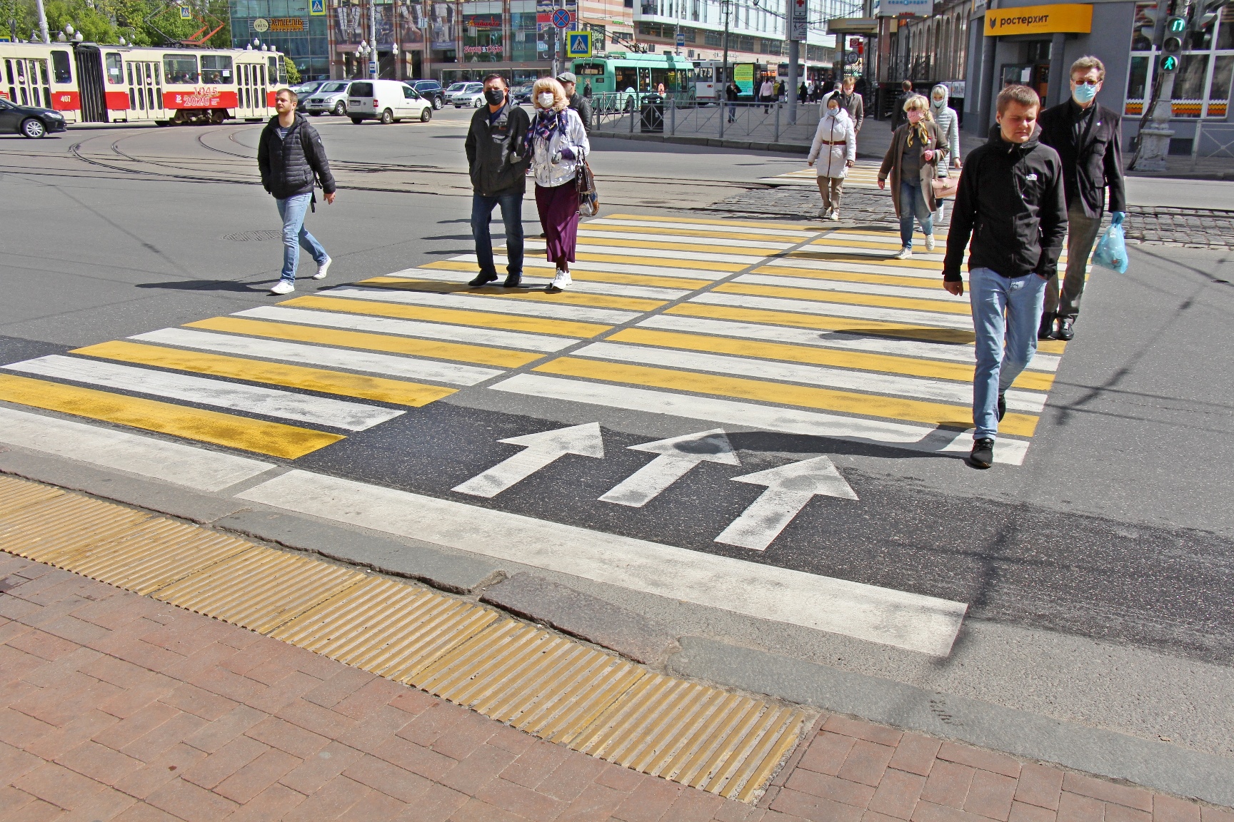 Поскольку в России принято правостороннее движение транспорта, то и направления движения пешеходов выдержаны по тому же правостороннему принципу – калининградцам и гостям предстоит освоить переходы со стрелками и оценить удобство и безопасность движения по полосам. Эта мера позволяет сократить время нахождения на проезжей части, избежать столкновений и конфликтных ситуаций при переходе.