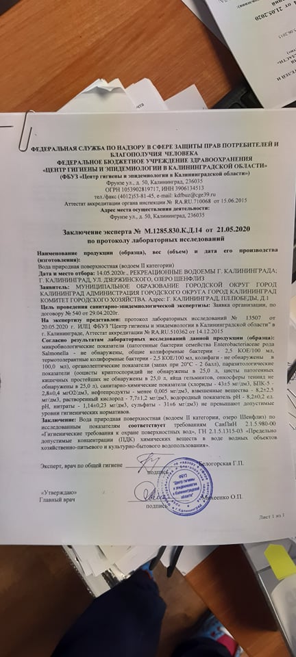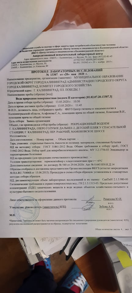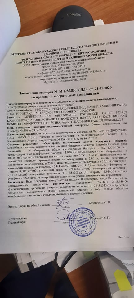 В мэрии уже получили результаты анализов проб воды из Центра гигиены и эпидемиологии Калининградской области.