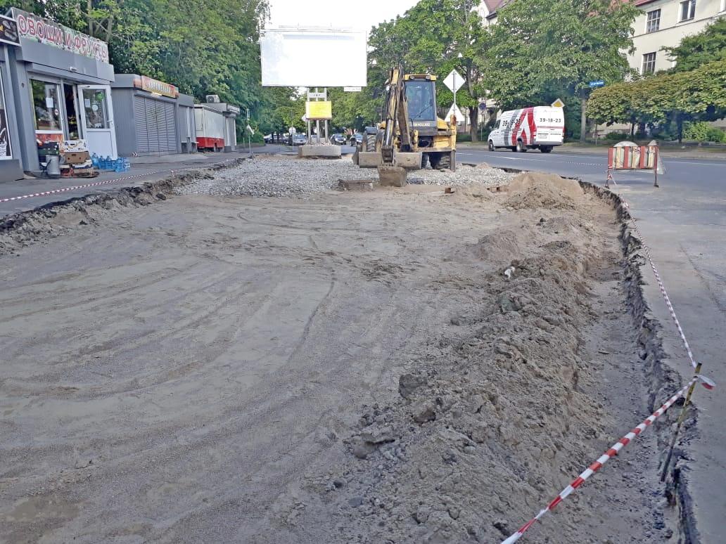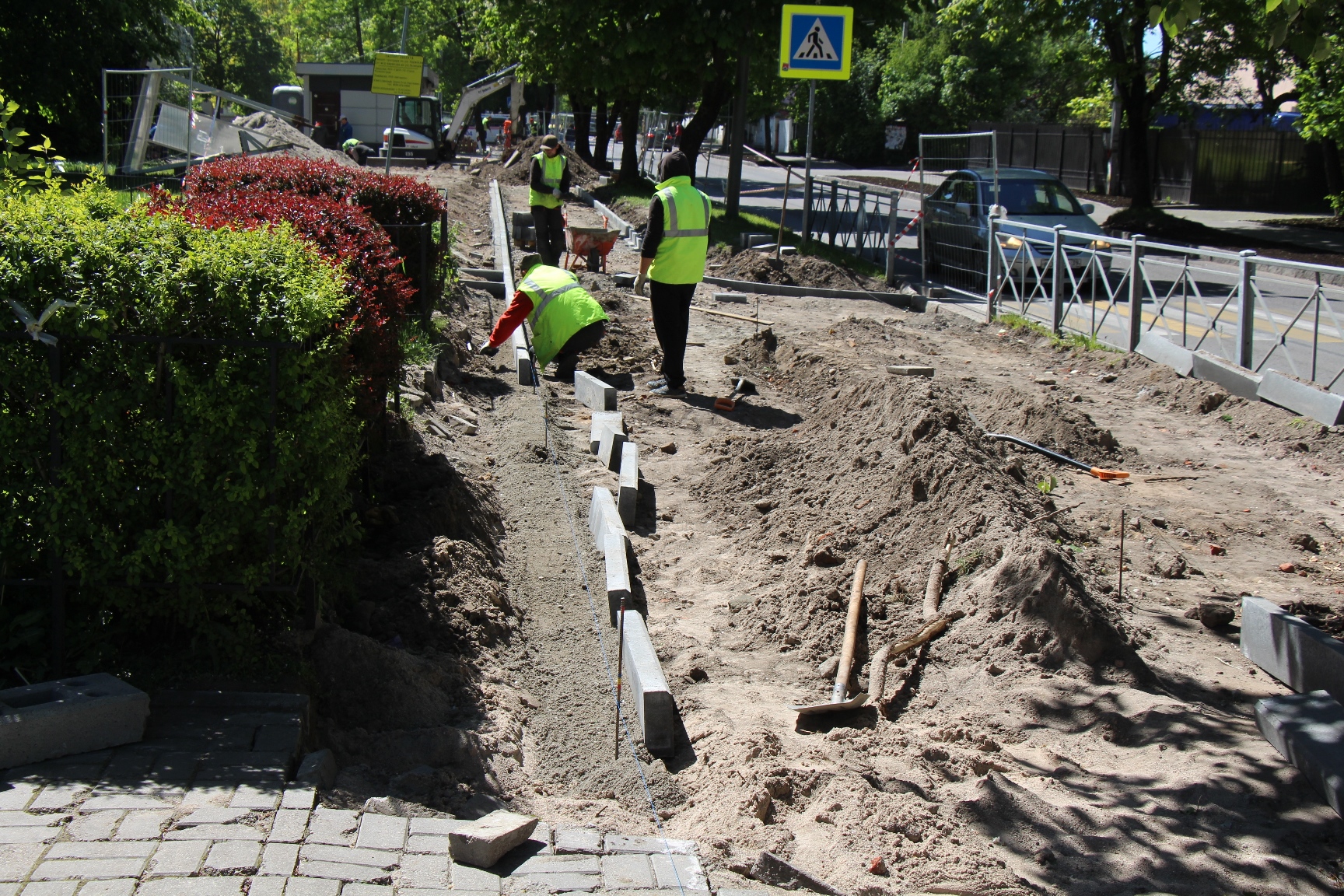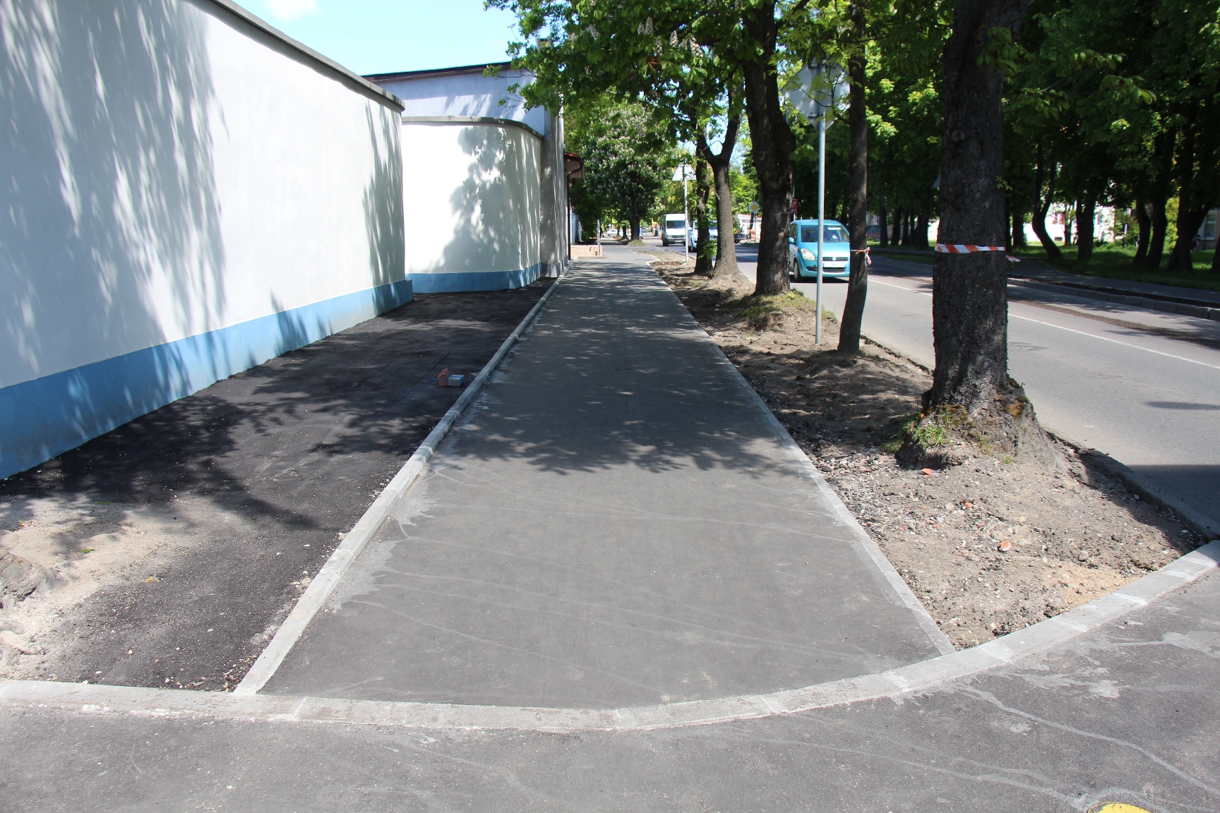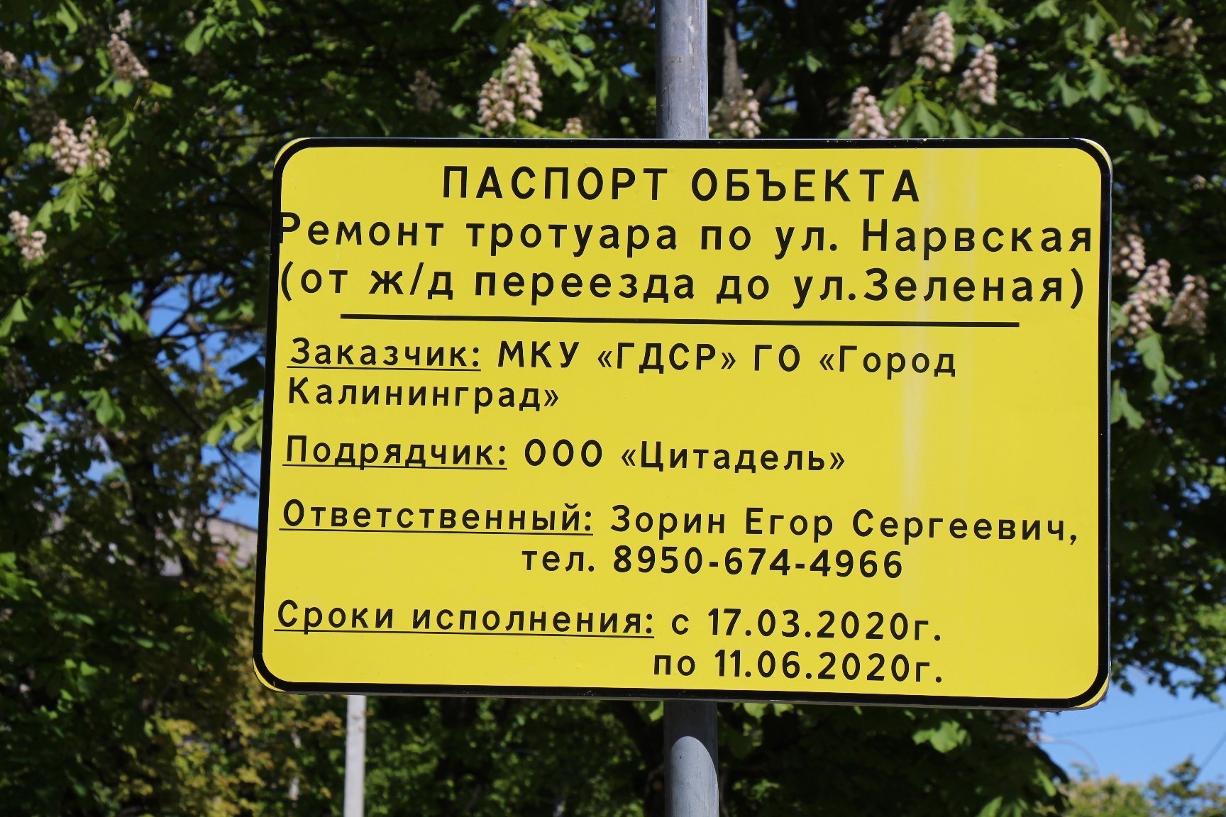 На ул. Нарвской асфальт уложен на нечётной стороне - от железнодорожного переезда до ул. Зелёной. На противоположной ещё до юбилея Победы уложили асфальт на тротуаре и на дорожке к мемориалу над братской могилой воинов, павших при штурме Кёнигсберга. На этой стороне тротуар продолжают до парковки: готовят песчаное основание, выставляют бортовой камень. Место работ огорожено, обозначены временные пешеходные переходы.
