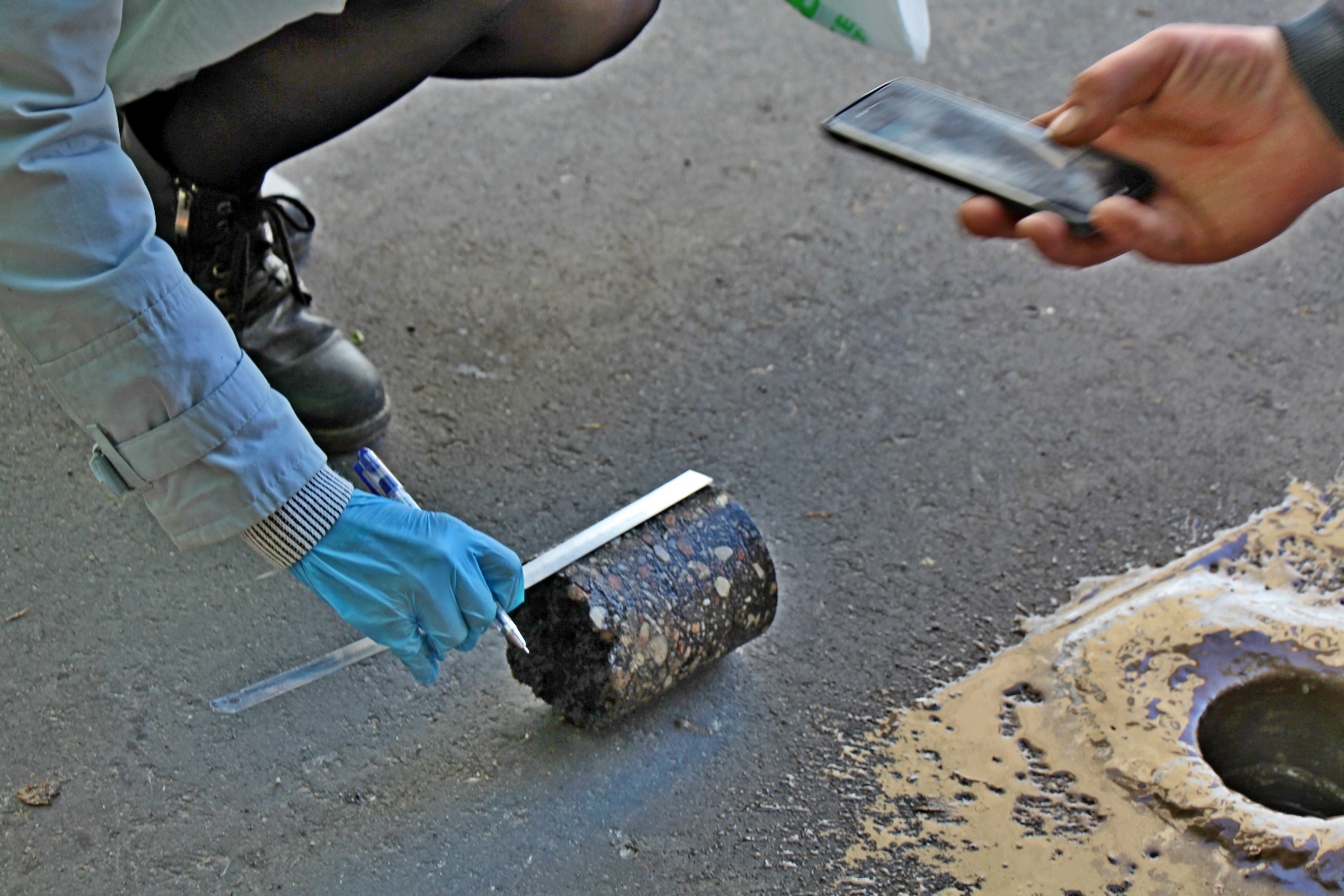 В рамках взаимодействия различных структур городской администрации на ул. Житомирской, где только что закончен капитальный ремонт проездов, в том числе к детскому саду №111, проведена комиссионная проверка качества, в том числе – с выемкой керна с проезжей части. Лабораторный анализ образца асфальта определит соблюдение технологии при производстве капремонта. При выемке присутствовали представители ГДСР и контрольно-счётной палаты.