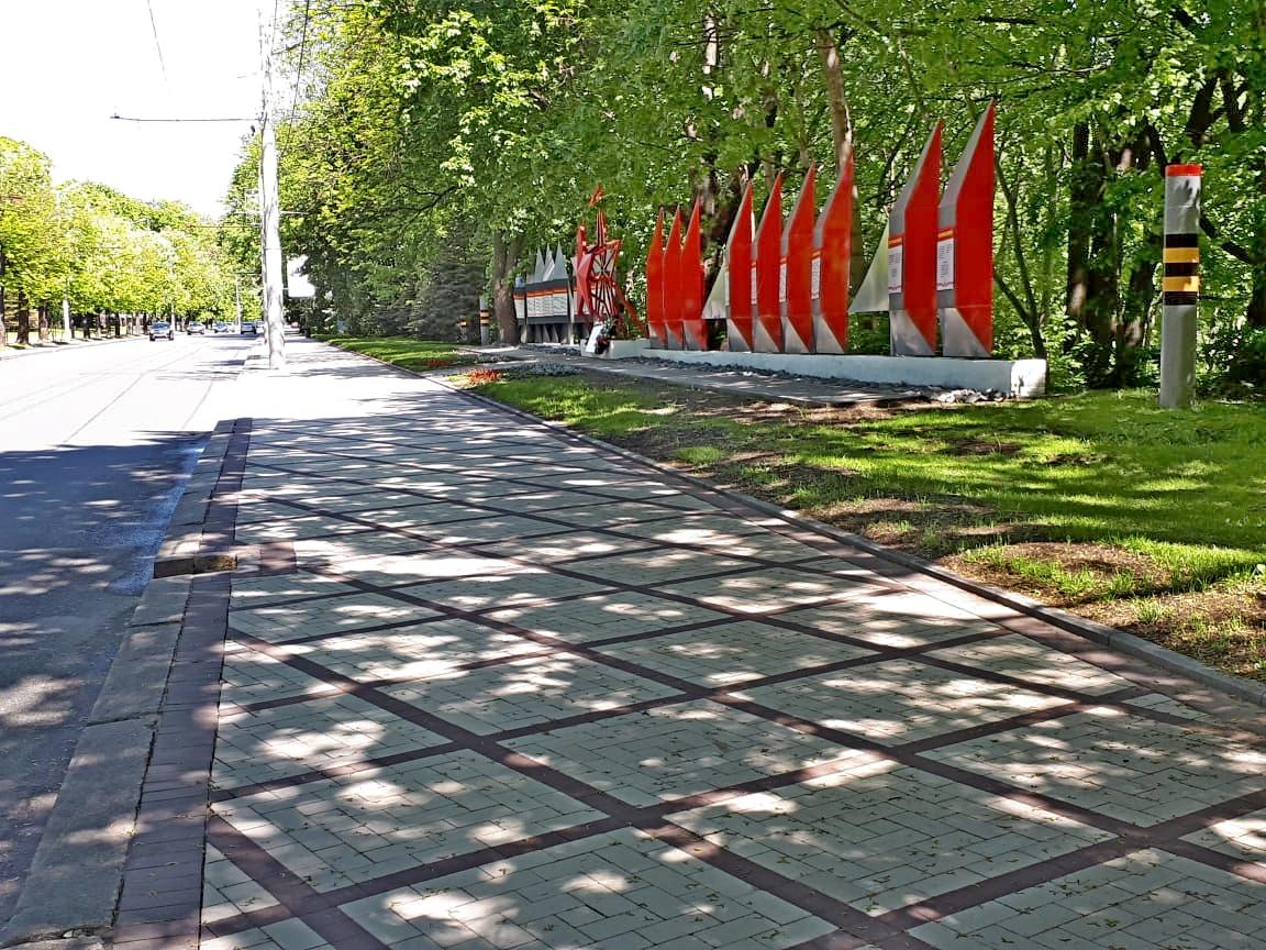 - ремонт тротуара по ул. Ялтинская от дома №24 до Восточной эстакады (установка бортового камня, устройство основания). Срок выполнения работ - до 10 июня 2020 г.