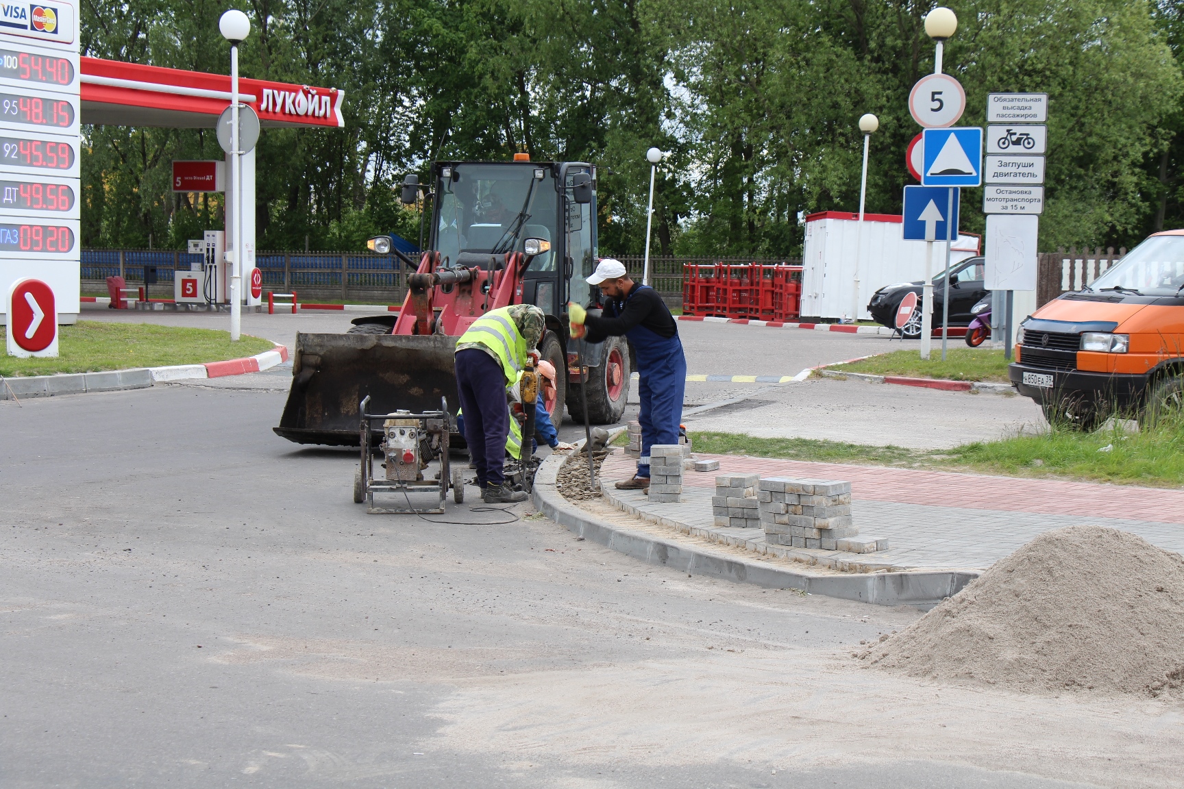 На Гагарина энергетики заняты установкой опор и подготовкой к подключению наружного освещения. Дорожники готовят основание тротуара и велодорожек в непосредственной близости от примыкания к смежному объекту – строительству развязки на пересечении Гагарина – Орудийной – Молодой гвардии. На локальном участке у АЗС устраняют замечания, в частности занижают бортовой камень при въезде на велодорожку.