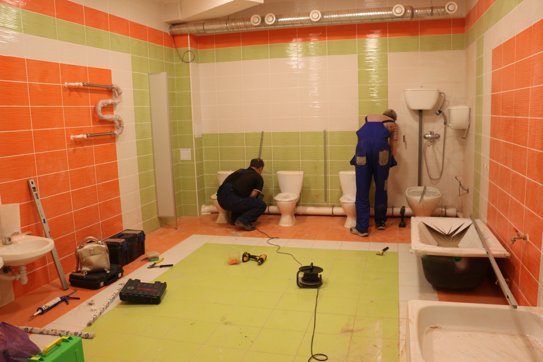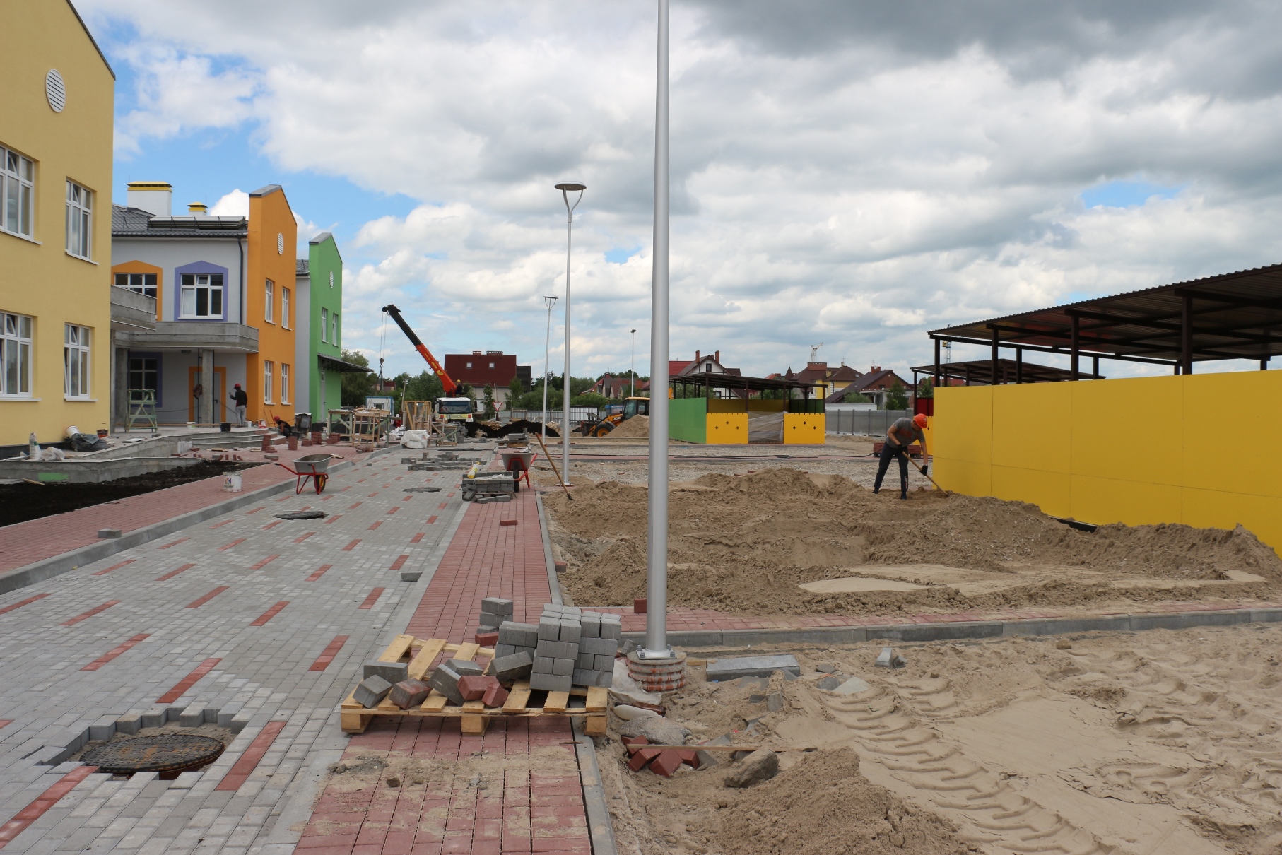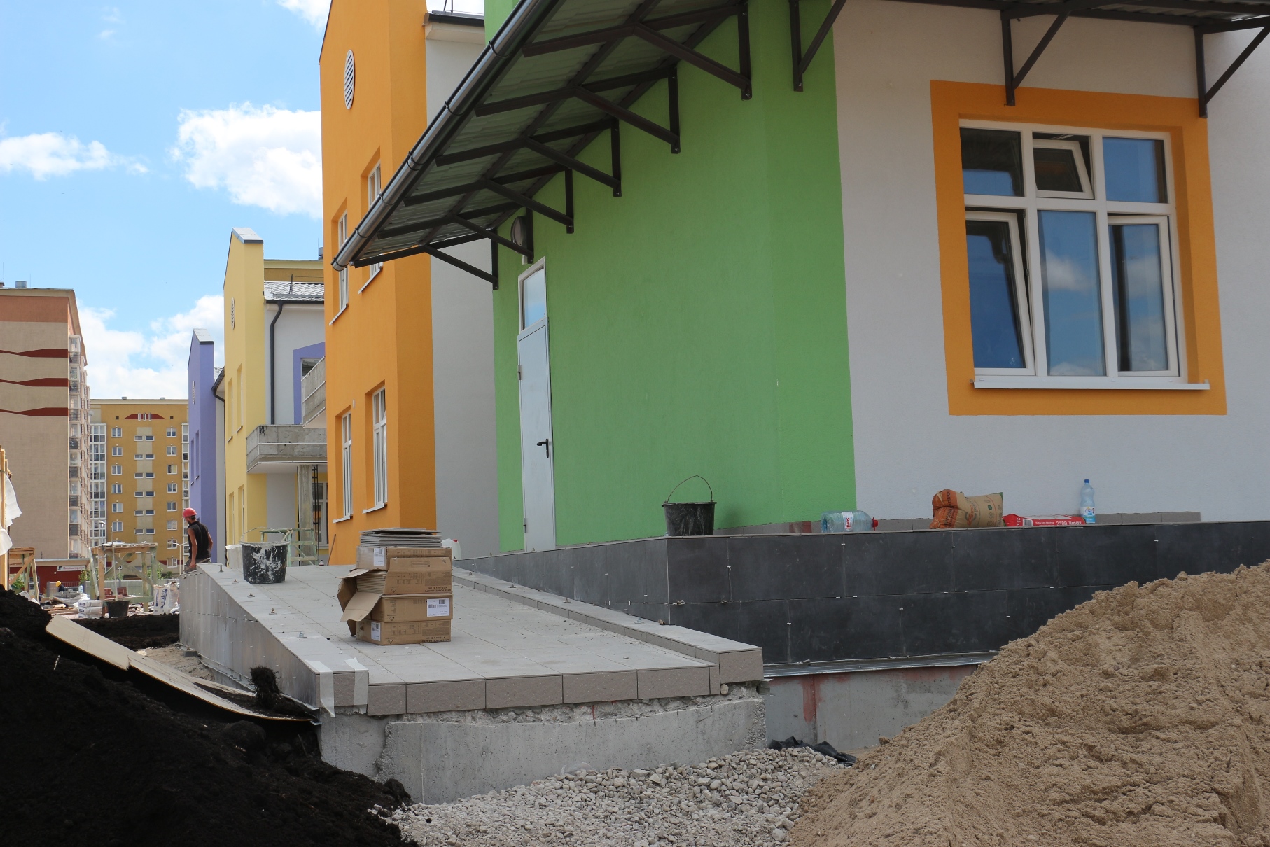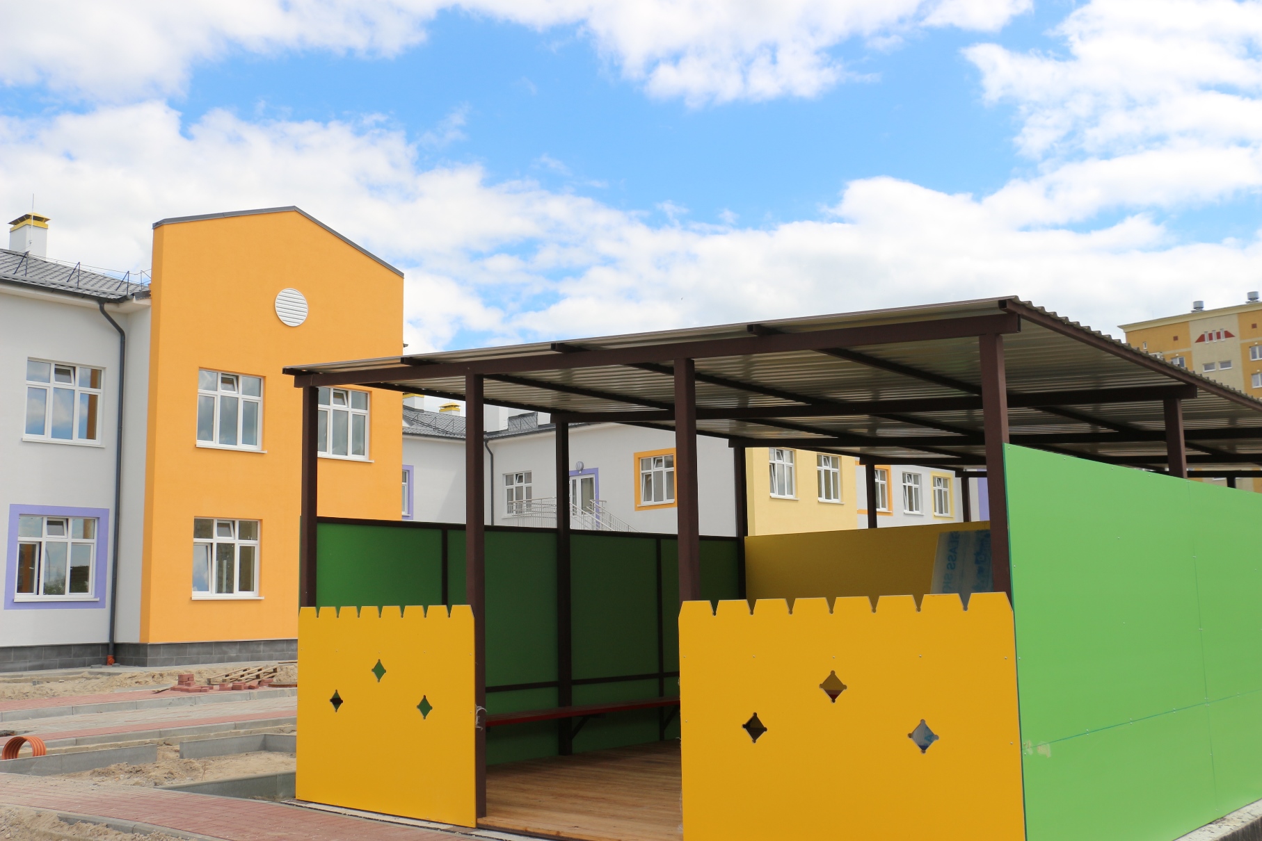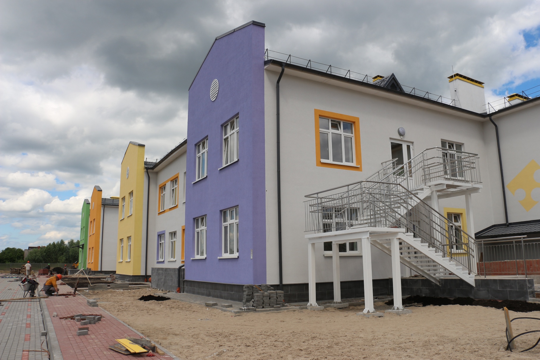 Строители работают с опережением утвержденного графика. Сейчас в здании практически завершены все отделочные работы, идет наладка инженерных систем, заканчивается благоустройство. В конце месяца ожидается прибытие малых архитектурных форм. На территории садика будет расположен автогородок и метеостанция для проведения профессиональных практических занятий с детьми.