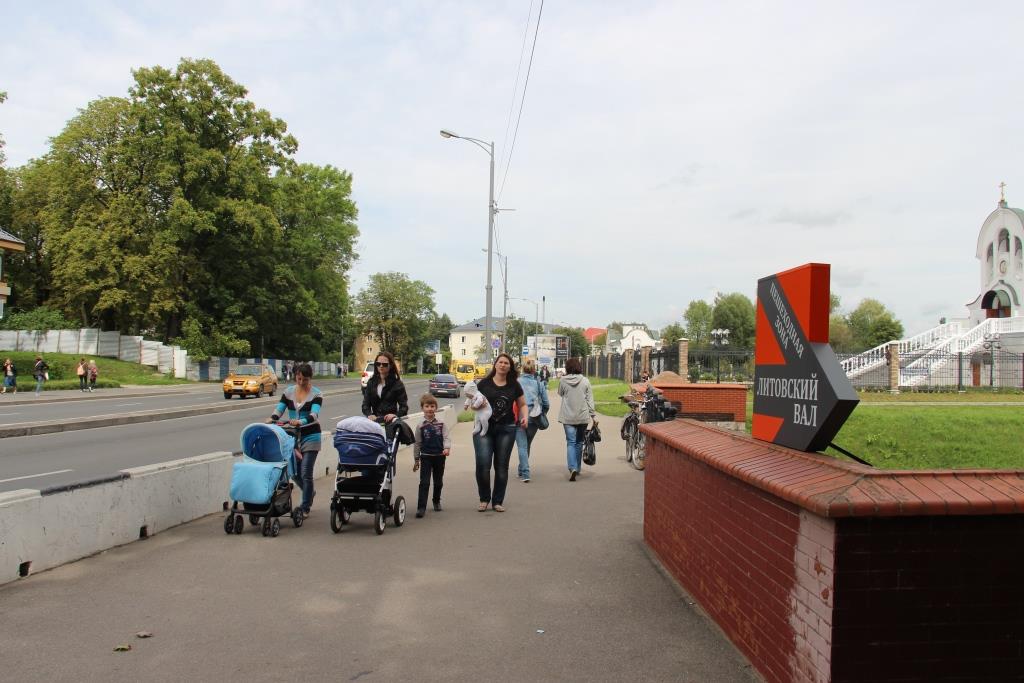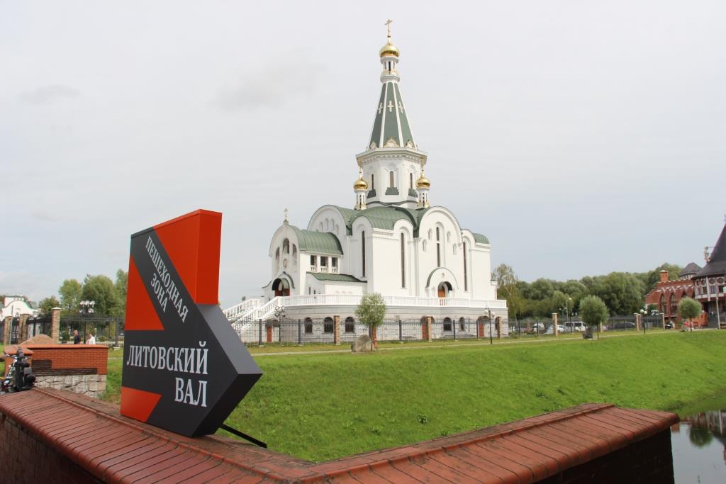 Одним из этапов воплощения идеи благоустройства Литовского вала стала установка указателей пешеходной зоны от ул. Невского до ул. Гагарина, которые помогают людям сориентироваться, где удобнее спуститься к Литовскому ручью. Первый указатель установлен на мостике рядом с храмом Александра Невского, второй – у Королевских ворот.