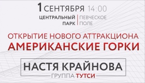 В первый осенний день в 14.00 в парке гостей ждет выступление певицы Анастасии Крайновой (группа Тутси). Вход на концерт свободный. Еще одним подарком станет - открытие новых аттракционов, среди которых «Американские горки». Точная копия этого аттракциона находится во Франции, в парке St. Paul. Он изготовлен одним из ведущих мировых производителей аттракционов, установивших самое высокое в Европе колесо обзора.