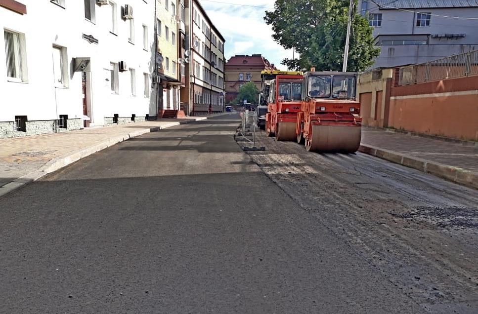 Сегодня, 6 июля, на ул. Клинической закончили укладку нижнего слоя асфальта, идёт устройство основания на заездах. Ранее по чётной стороне завершили укладку цветной плитки на тротуарах.