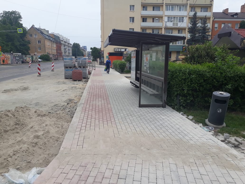 - ремонт ул. Багратиона от Ленинского пр. до ул. Октябрьской (до 15 сентября, исполнение 15 процентов) - идёт укладка тротуарной плитки.