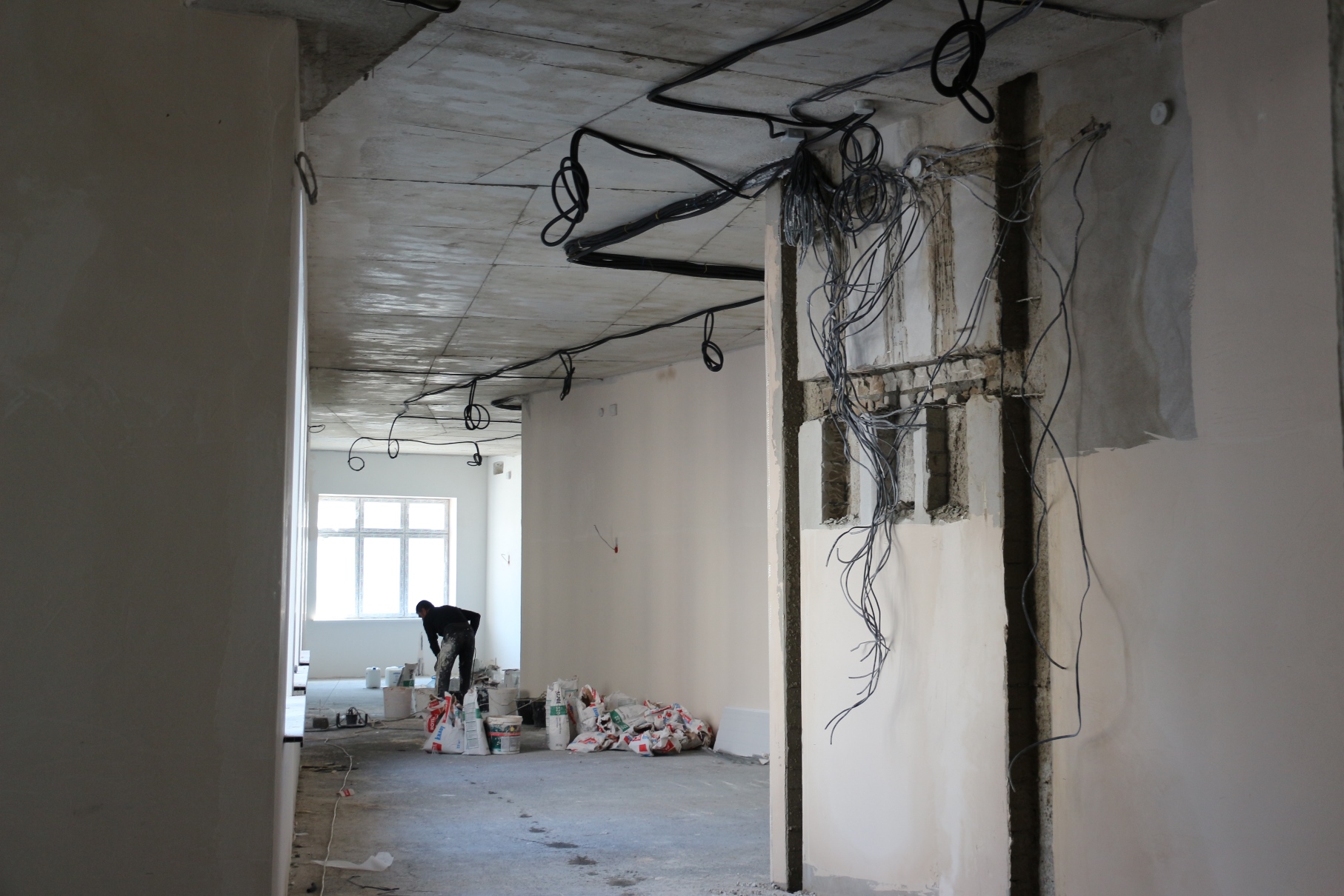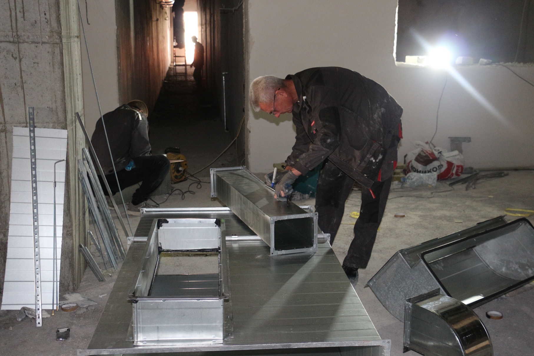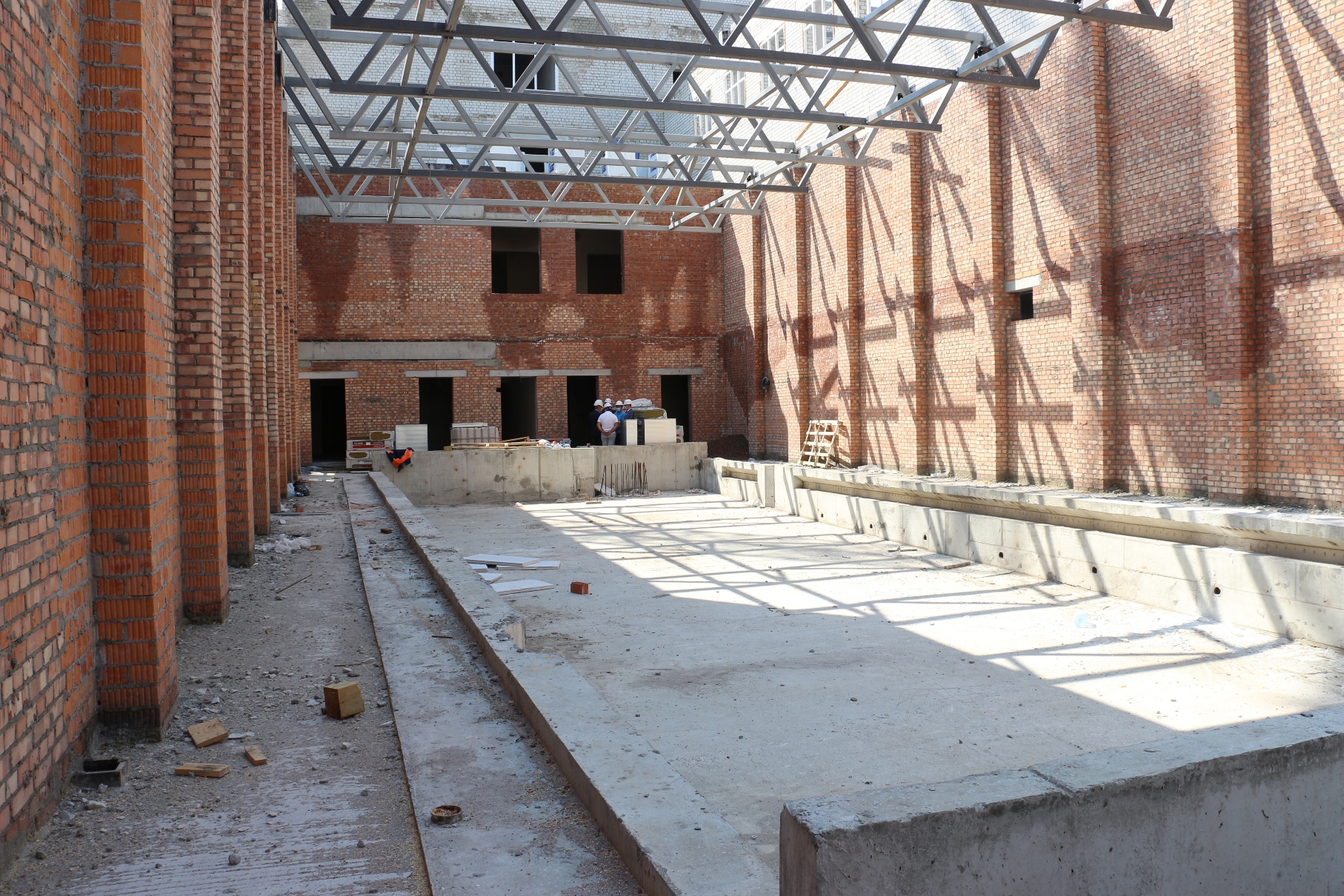 Перед заказчиком и подрядчиком ООО «Строительная компания «Запад-Строй», работающим на строительстве новой школы на ул. Артиллерийской, контракт с которым подписан 27 марта этого года, стоит сложнейшая задача выполнить все работы и ввести здание в эксплуатацию до конца 2020 года. Работы ведутся в очень плотном режиме. Сейчас на значительной части здания ведутся фасадные работы, а внутри оштукатуриваются стены, монтируются электросети, другие коммуникации.