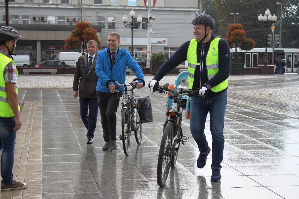 Заместитель главы администрации, председатель комитета городского хозяйства Сергей Мельников на велосипеде передвигается весь день. Утром отвез ребенка в детский сад, в обед присоединился к активистам проекта «Колесо истории», которые от Площади Победы доехали на велосипедах до БФУ им. И. Канта на ул.А.Невского, где состоялся круглый стол «Велосипед - идеальный транспорт для Калининграда».
