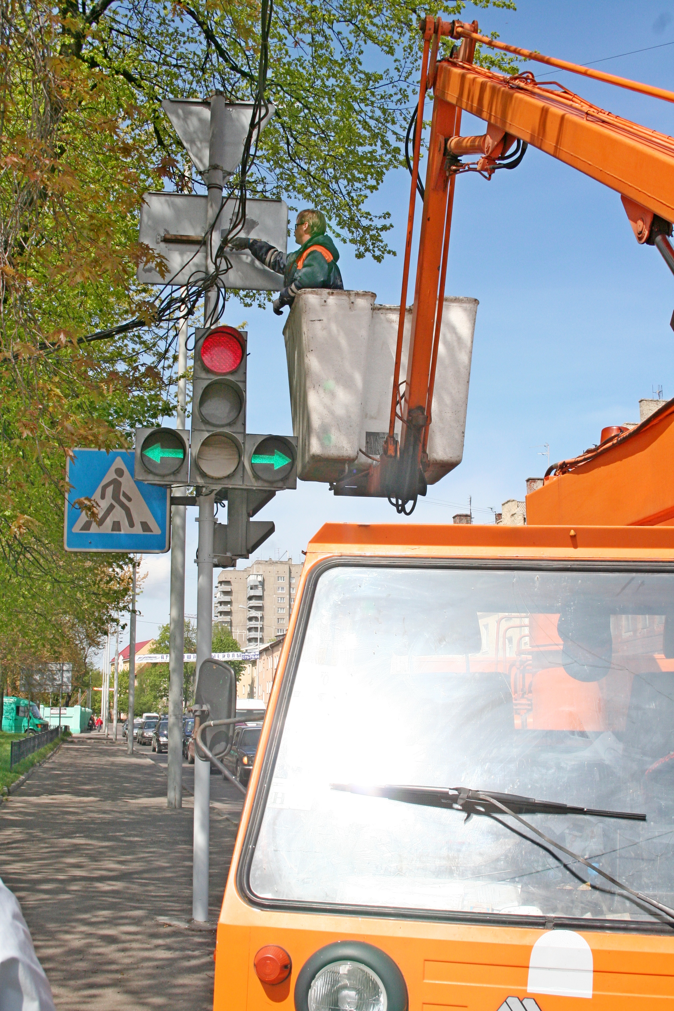 Установка Г-образных опор с дорожным знаком «пешеходный переход» над проезжей частью: