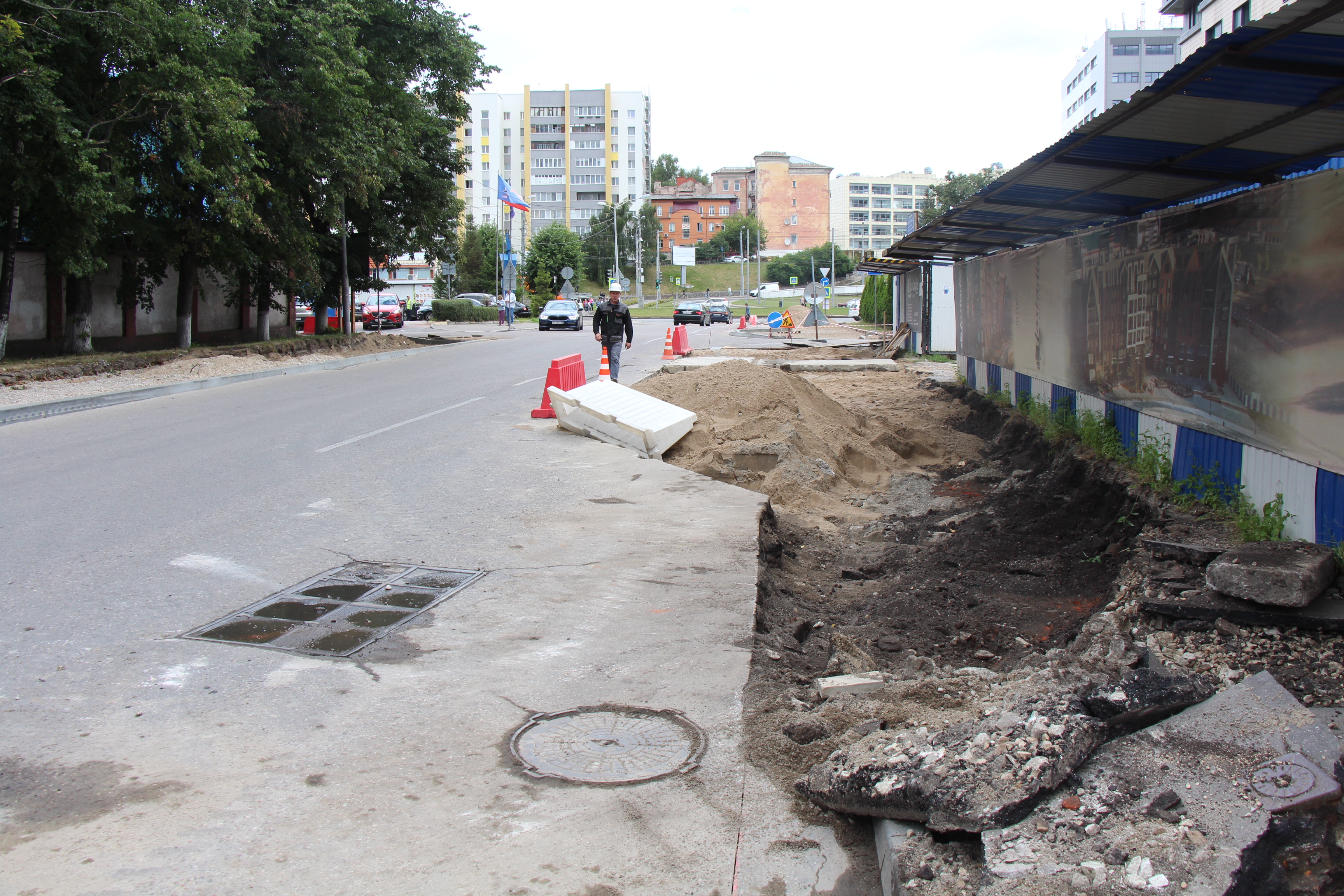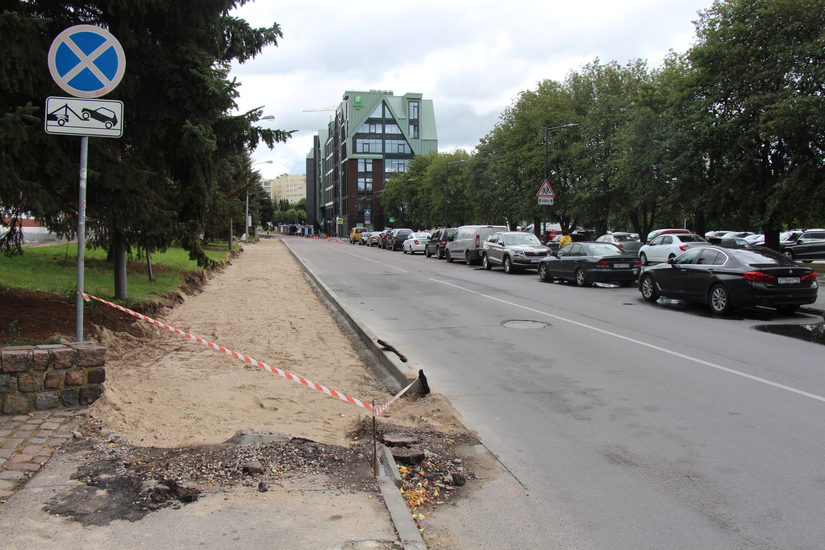 Сейчас на улице продолжается установка бортового камня на границе дороги и тротуара, а также подготовка к оборудованию парковочных мест вдоль тротуара на нечётной стороне.