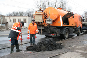 По словам генерального директора «ДСП» Сергея Григоренко, особенностью нынешней зимы также стал повышенный расход песко-соляной смеси для обеспечения безопасности на городских улицах. Обратная сторона этой обработки – скапливающийся в колодцах песок. На очистку каждого колодца дождевой канализации бригаде требуется около часа рабочего времени. Ещё в течение двух-трёх часов извлечённые из колодца песок, листья и ил до погрузки в самосвал должны избавиться от части воды, чтобы не загрязнять улицу по пути следования.