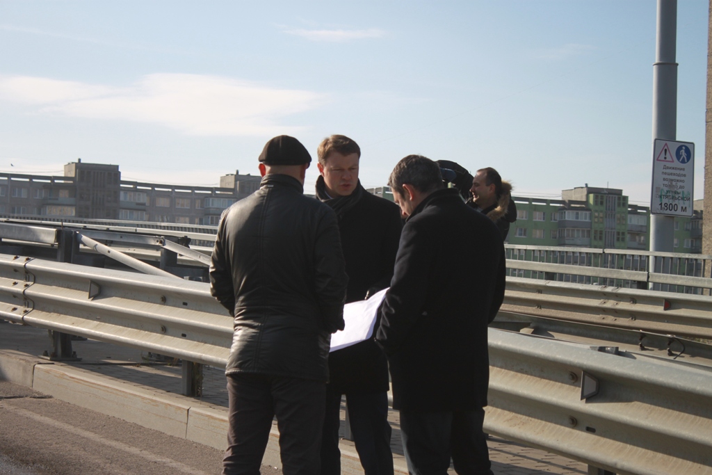 Сегодня, 18 октября 2016 года, по поручению главы города Александра Ярошука заместитель главы администрации, председатель комитета архитектуры и строительства Артур Крупин проконтролировал ход ремонтных работ на мостовом переходе через реки Старая и Новая Преголя.