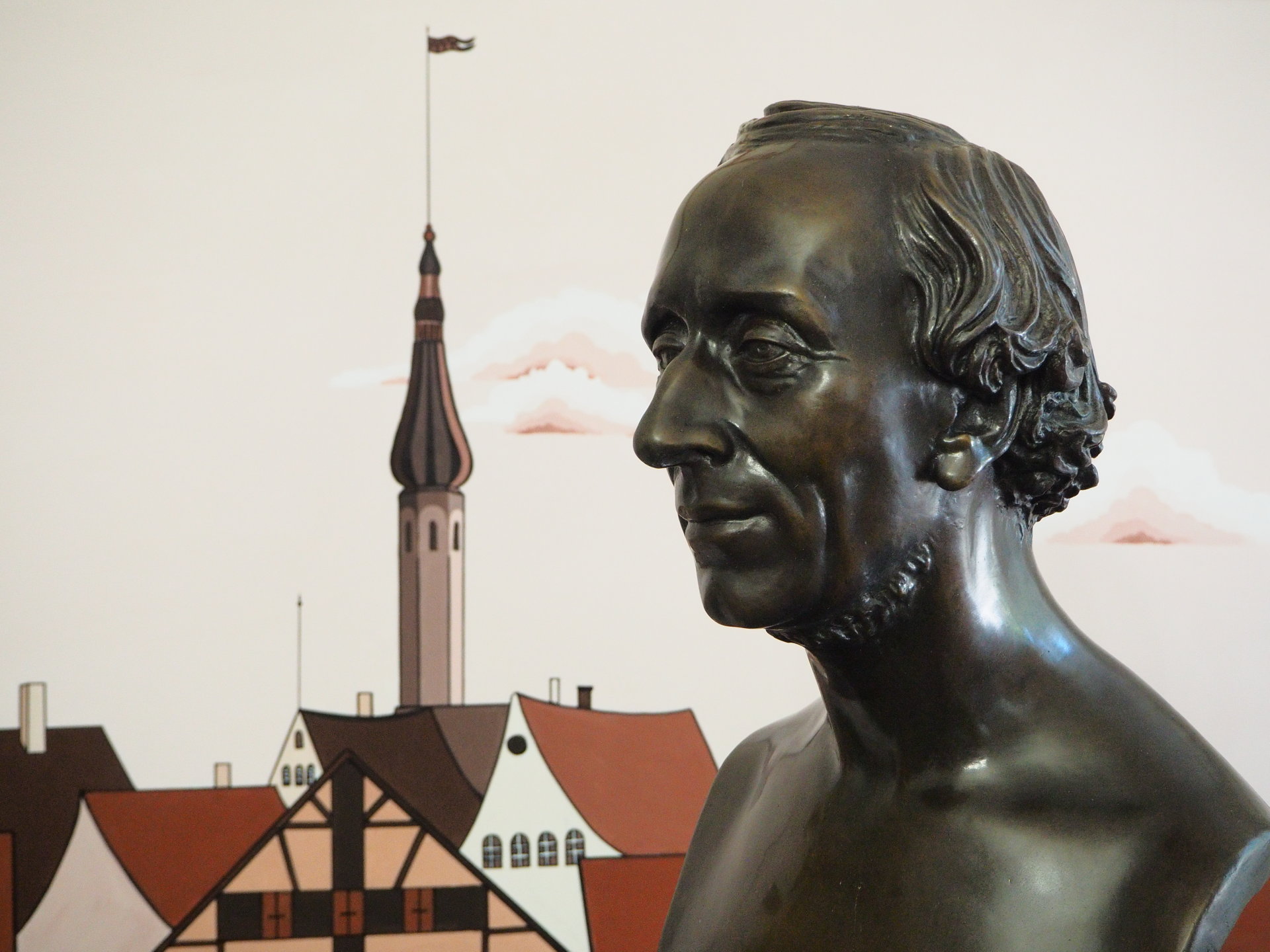 На входе гостей встретит самый настоящий сказочник. Ещё при жизни Г. Х. Андерсену был установлен памятник, а бронзовая копия этой работы, бюст сказочника, стала необычным подарком городу Калининграду от датской делегации, побывавшей на 750-летии Калининграда-Кёнигсберга в 2005 году.