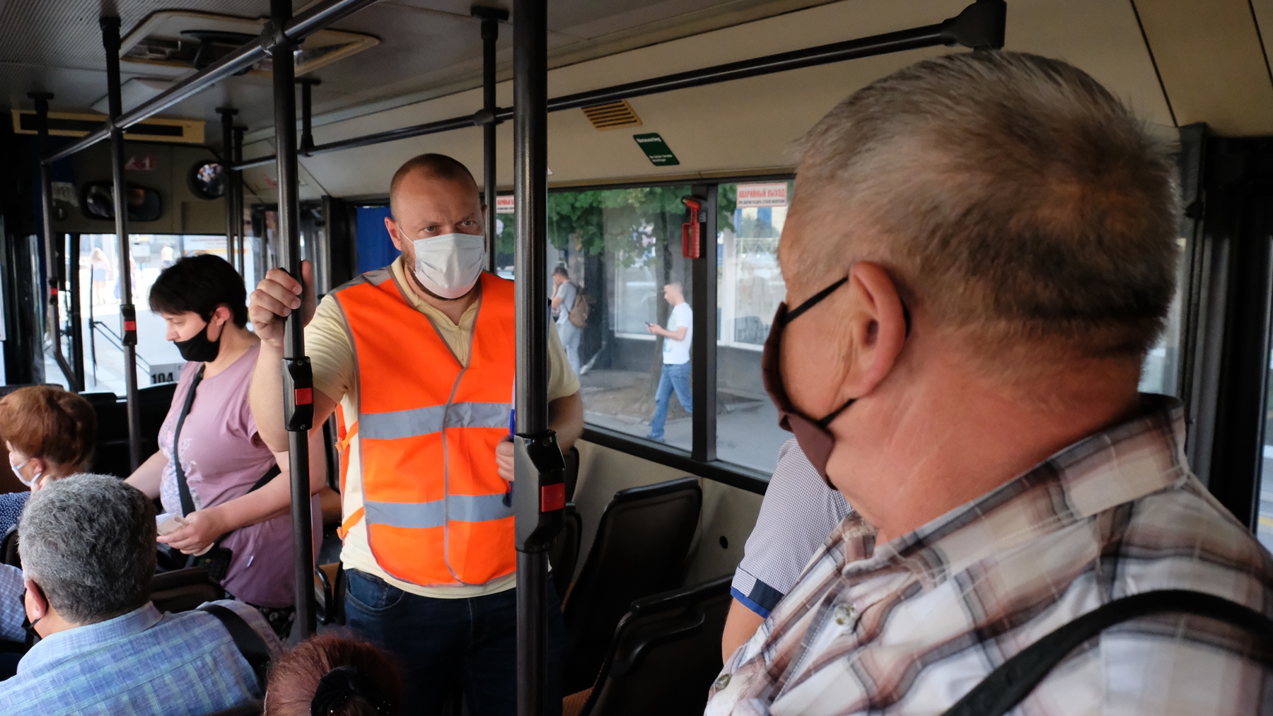 Рейд организовали одновременно в трех направлениях: по Центральному, Ленинградскому и Московскому районам. Кроме того, надевают ли пассажиры, водители и кондукторы маски, сотрудники администрации города проверили - есть ли в салоне голосовое оповещение о противоэпидемиологических мерах.