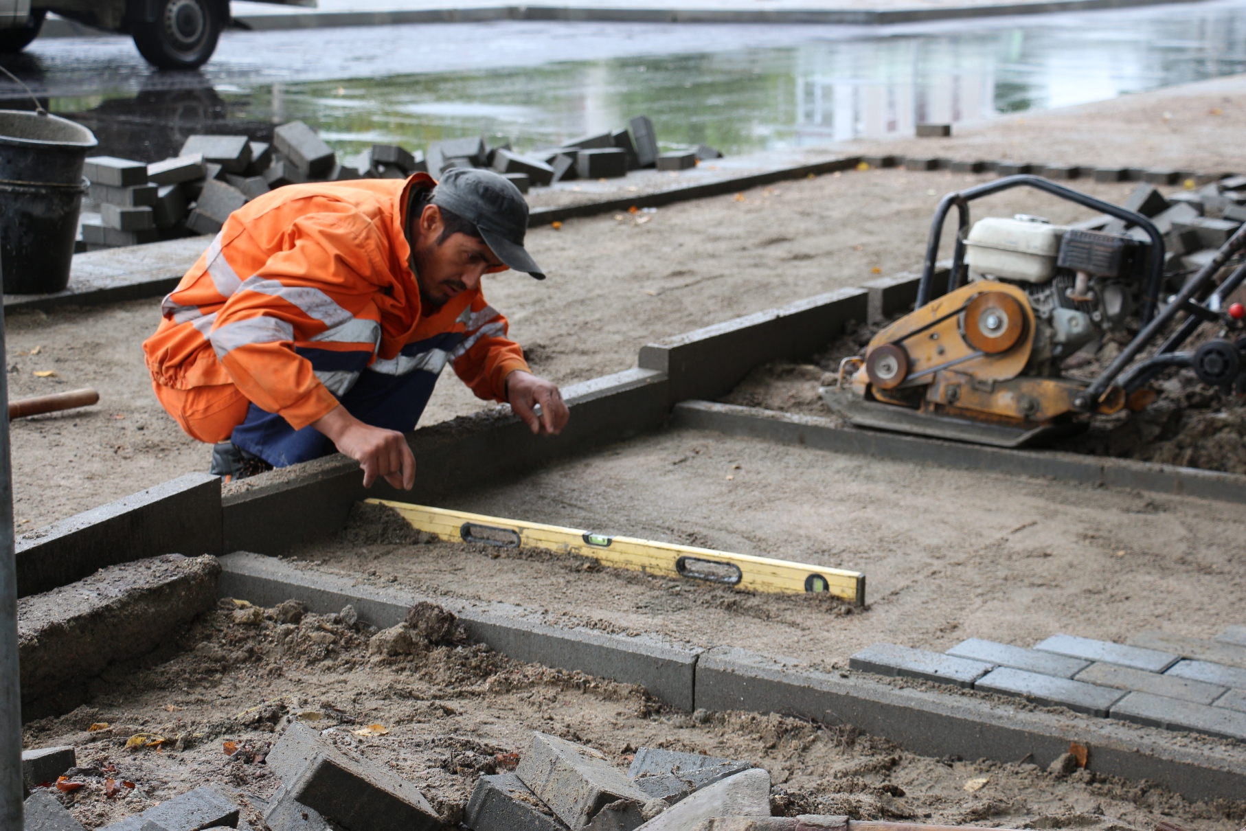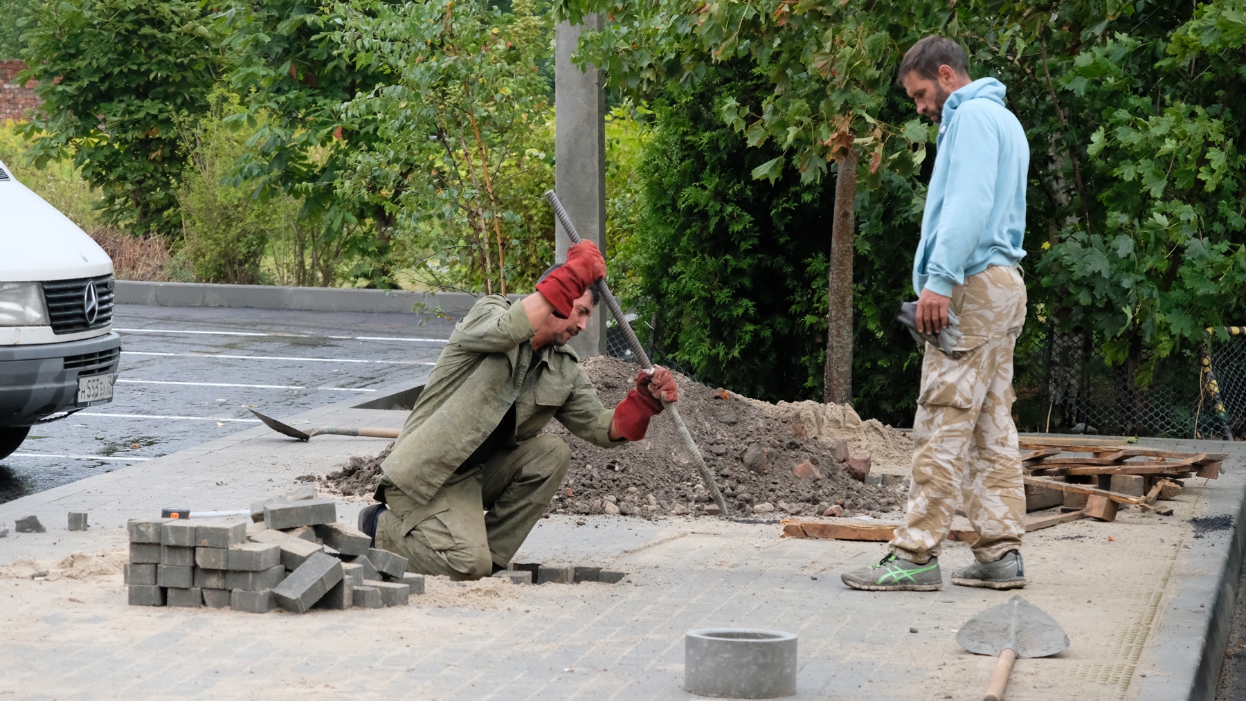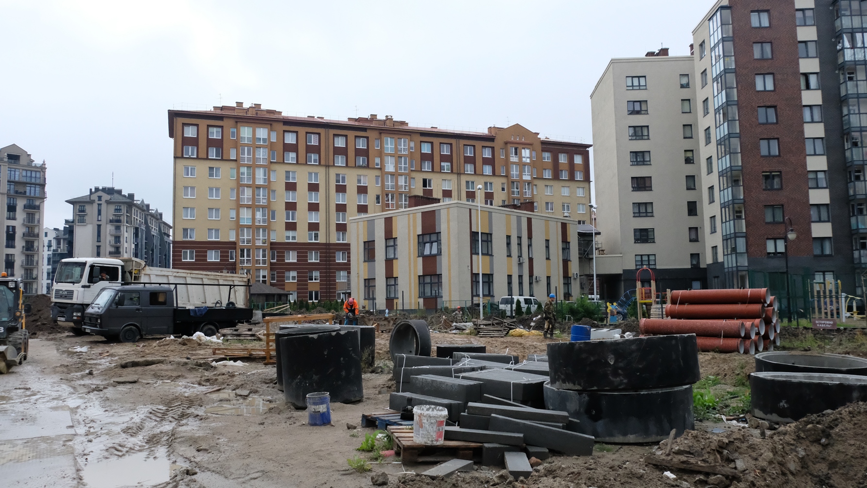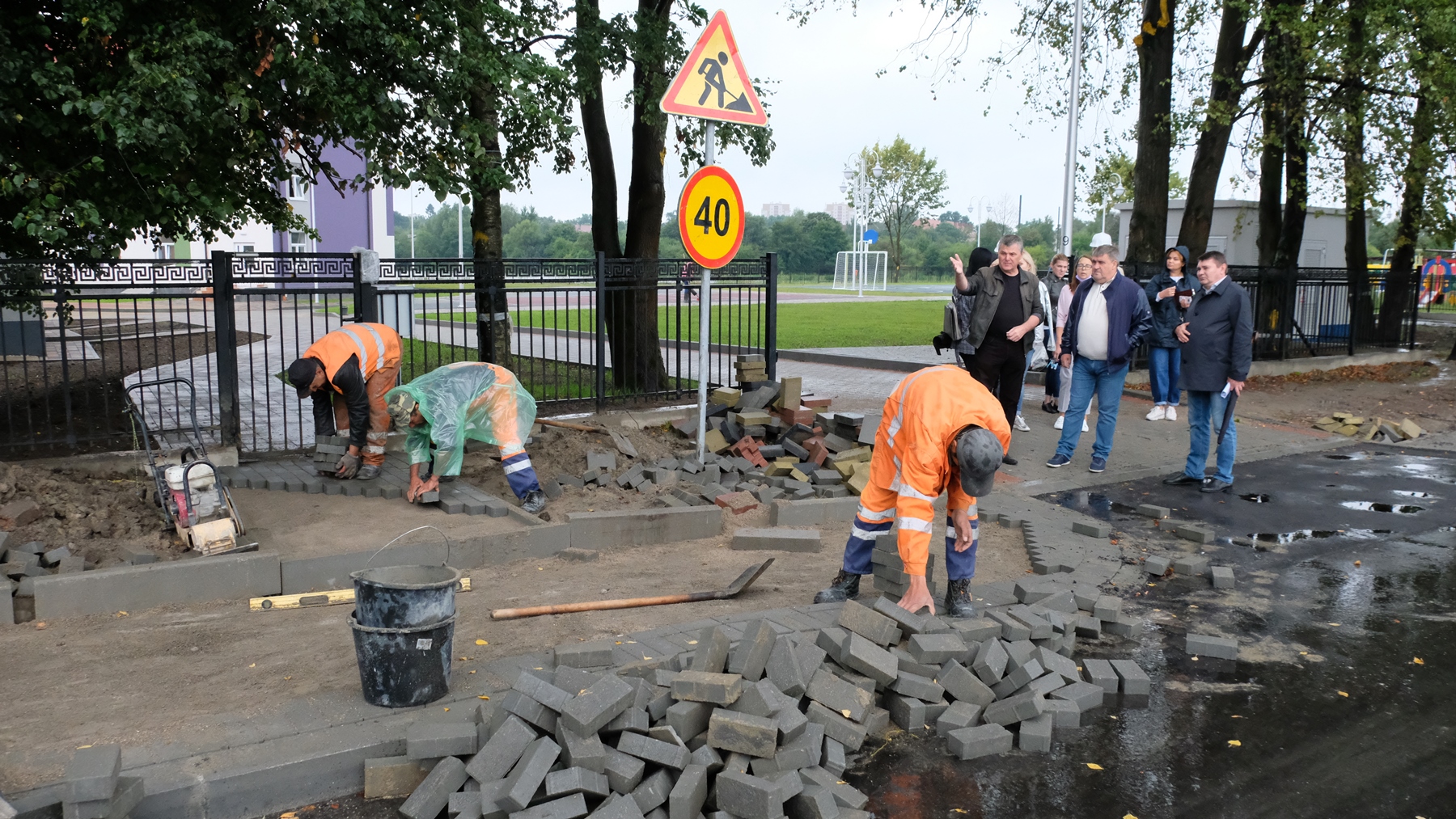 Этот объект изначально вел другой подрядчик, контракт с которым пришлось расторгнуть из-за срыва установленных сроков. И сейчас строители здесь работают в очень напряженных условиях, поскольку многие процессы осуществляются параллельно. Ведутся не только внешние работы по зданию, отделочные внутри, но и активно благоустраивается пришкольная территория. Увязать эти процессы, с учетом того, что по стройплощадке ездит техника, непросто, но необходимо. Например, мероприятия по озеленению невозможно проводить в сильно дождливую погоду или при отрицательных температурах. Поэтому работы по благоустройству и озеленению должны быть закончены в сентябре, до наступления неблагоприятной погоды