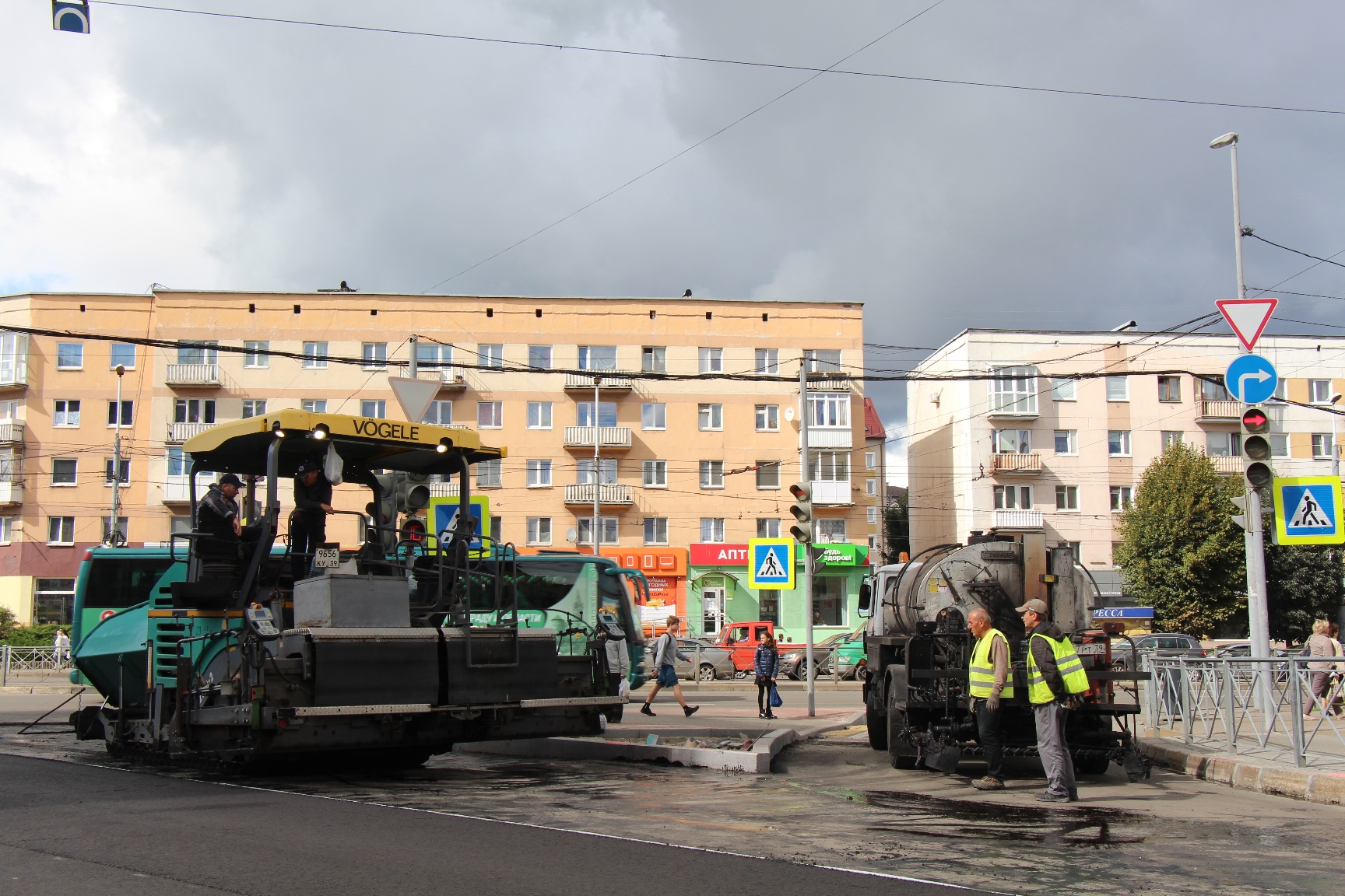 - ремонт ул. Багратиона (от Ленинского проспекта до ул. Октябрьской) – идёт регулировка люков и подготовка к укладке верхнего слоя асфальтобетона, срок выполнения работ – до 15 сентября;