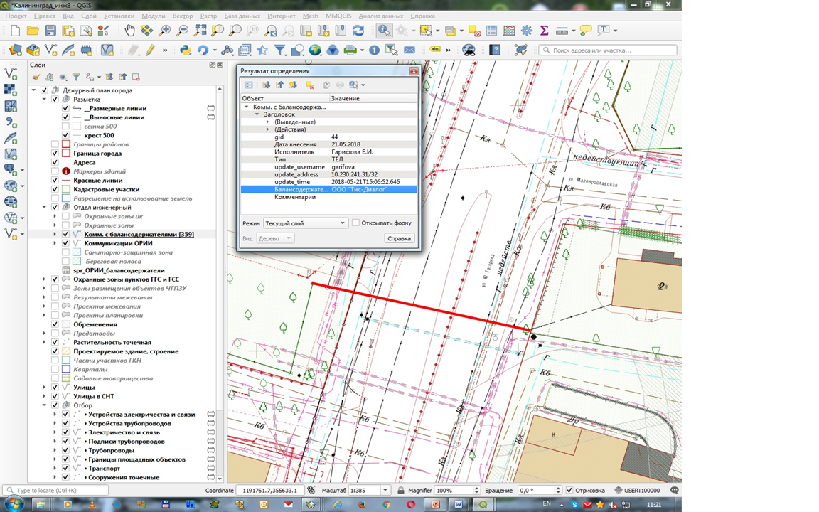 Отделом развития инженерной инфраструктуры организовано внесение в цифровой дежурный план города сведений о балансодержателях сетей связи и электроснабжения на стадии закрытия ордера на раскопки в географической информационной системе QGIS с мая 2018 года. Всего по состоянию на конец августа 2020 года внесена информация о балансодержателях на 359 участках инженерных сетей.