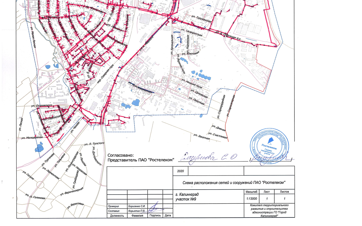 Всего в Калининграде за период проведения инвентаризации (с февраля 2016 г. по сентябрь 2020 г). проинвентаризировано 8 организаций с внесением сведений о принадлежности инженерных сетей в цифровой дежурный план города. В стадии инвентаризации находится 1 организация – Калининградский филиал ПАО «Ростелеком», с учетом большого объема работы планируется завершить в декабре 2020 года. После завершения инвентаризации сетей и сооружений «Ростелекома», предстоит проинвентаризировать еще 6 организаций. Приступить к этому станет возможно с января 2021 года.