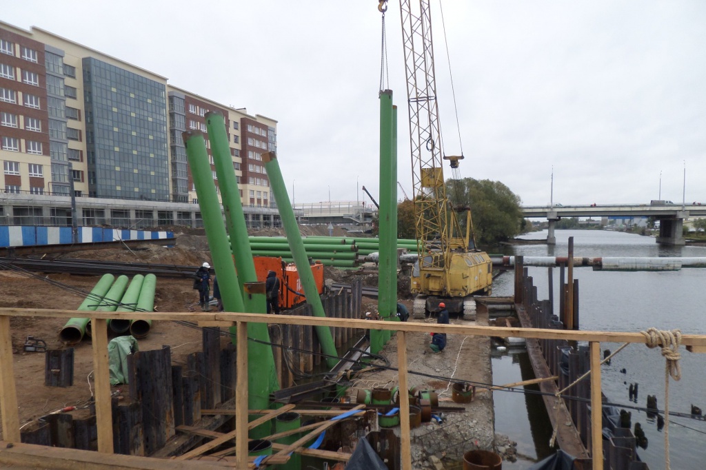 «К этому этапу относится обустройство шпунтового ограждения опор, демонтаж опор, которые были возведены под старый мост еще в 1882 году. Осталось демонтировать 2-ю и 3-ю опоры. Затем убирается образовавшийся строительный мусор из этих мест и погружаются трубчатые сваи-оболочки диаметром 530 мм, глубина у них порядка 24 метров. А них потом будет обустраиваться армированный каркас и ростверк. Это и будет являться фундаментом будущей опоры. Всего таких опор по проекту 4. 4-я опора, находящаяся со стороны набережной Ветеранов, обустраивается опережающими темпами, там уже залит ростверк», – поделился Игорь Соломянюк.